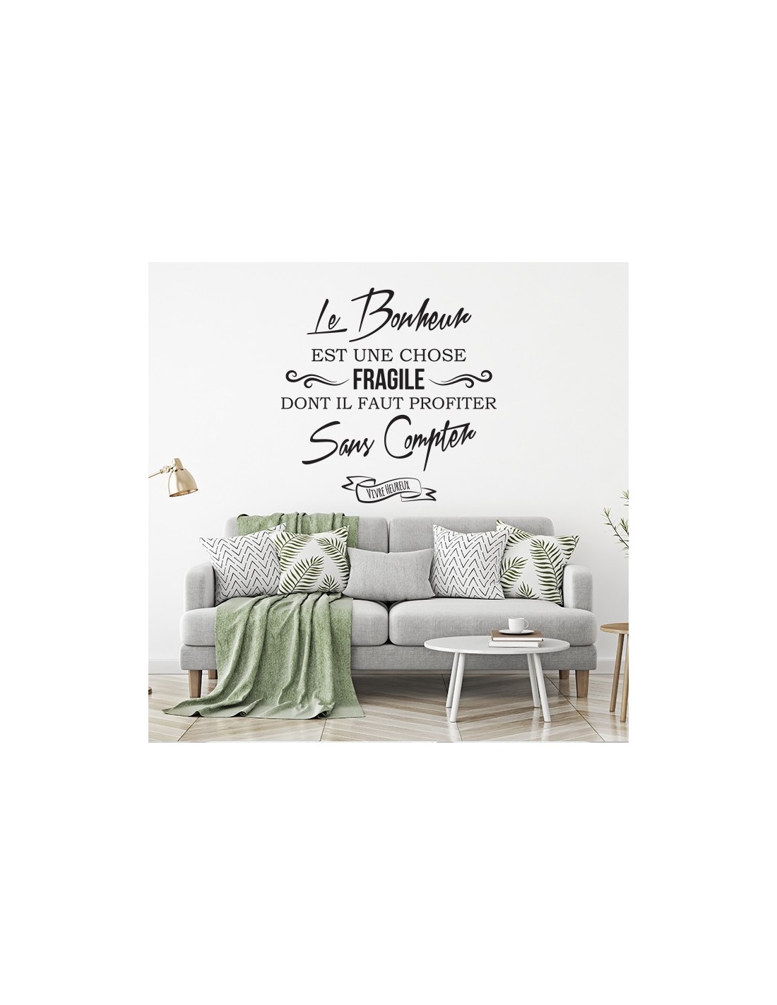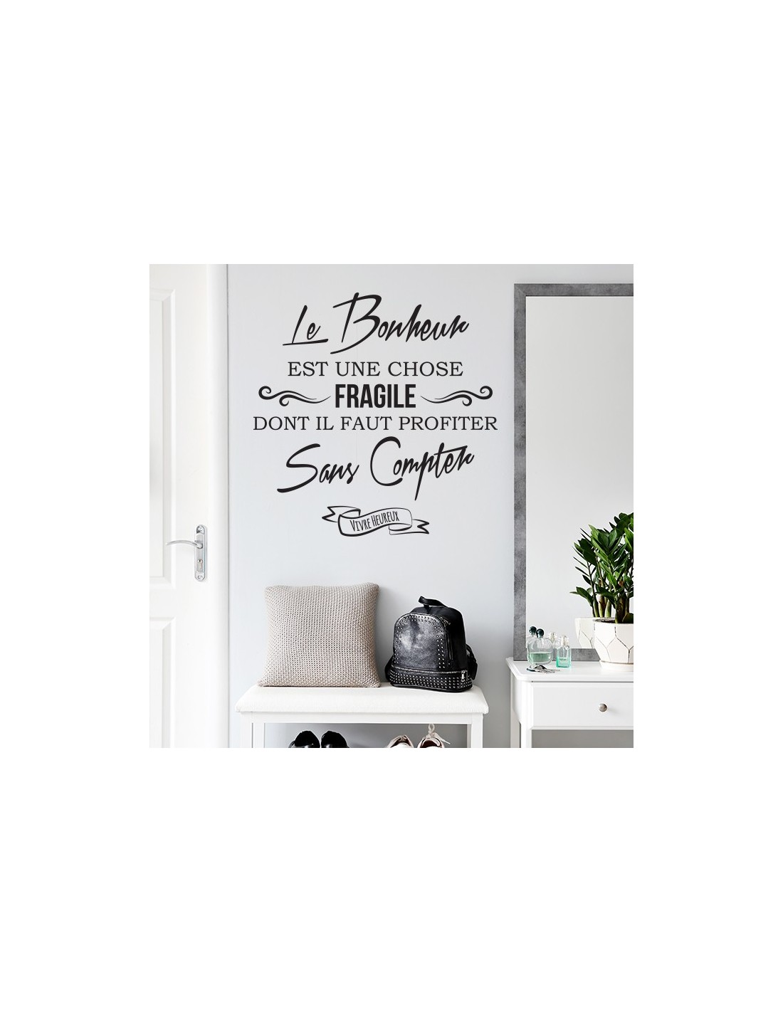 Décorez votre intérieur avec douceur grâce à ce sticker mural citation le bonheur est une chose fragile dont il faut profiter sans compter... Ce sticker citation trouvera facilement sa place quel que soi la pièce que vous désirez décorer. Une façon originale d'apporter une pointe de motivation tout en décorant votre maison.