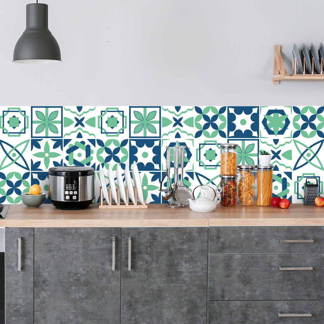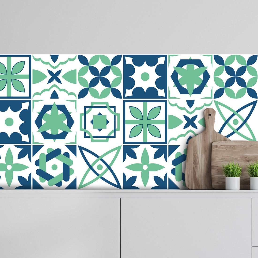 Crédence adhésive carreaux de ciment vert et bleu