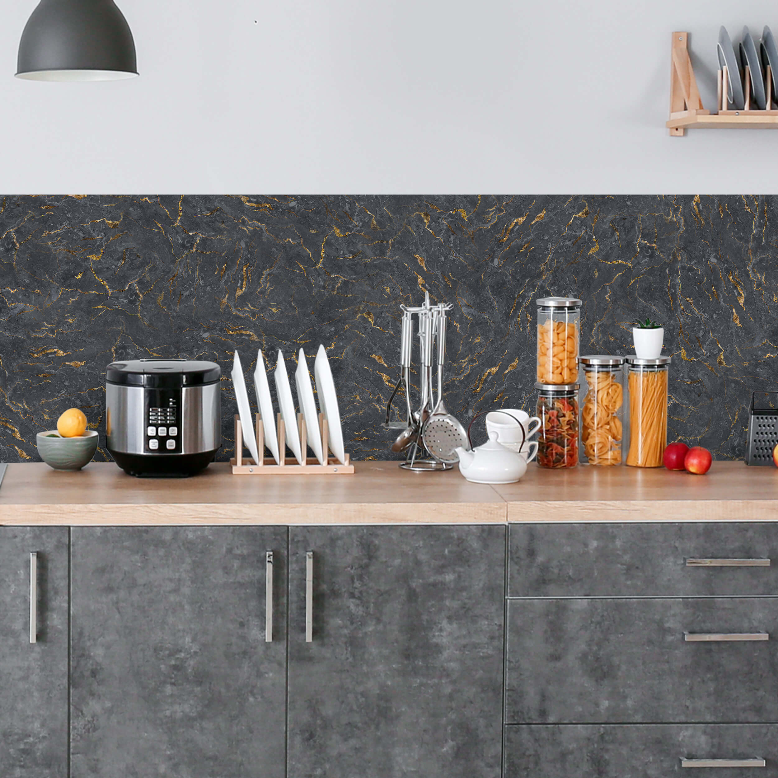 Crédence adhésive effet marbre gris