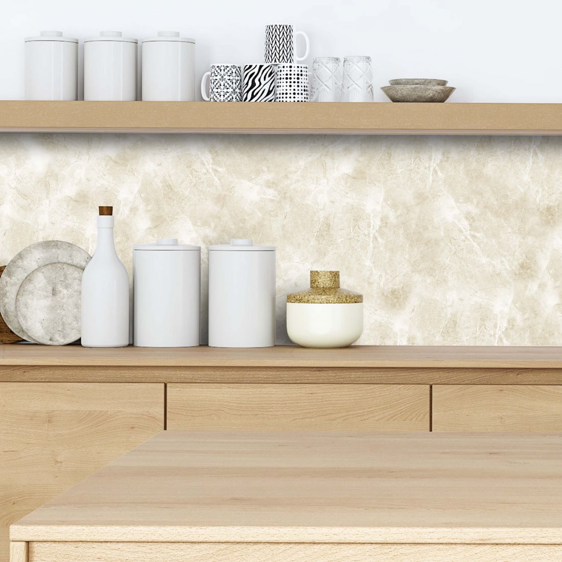 Crédence adhésive effet marbre ocre clair