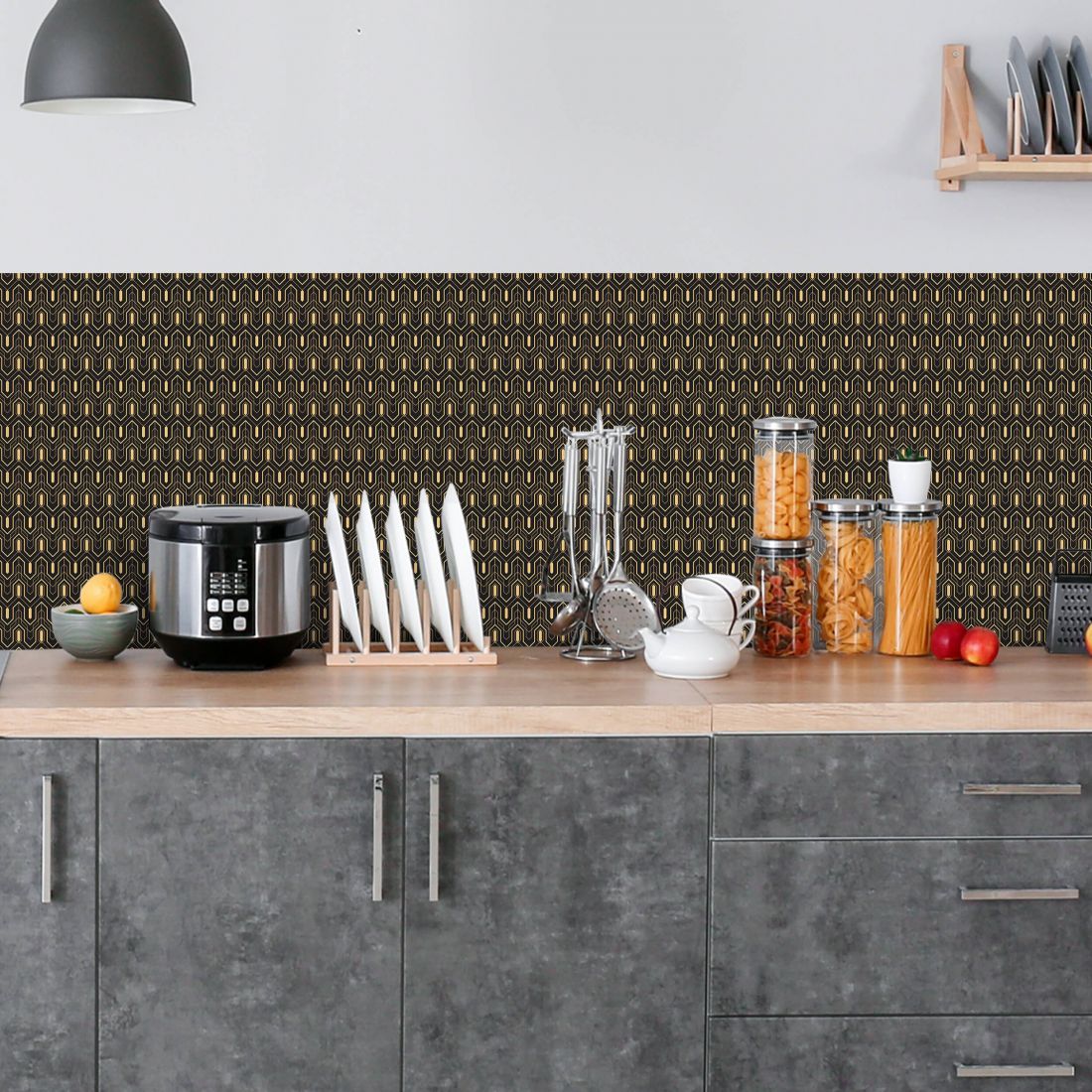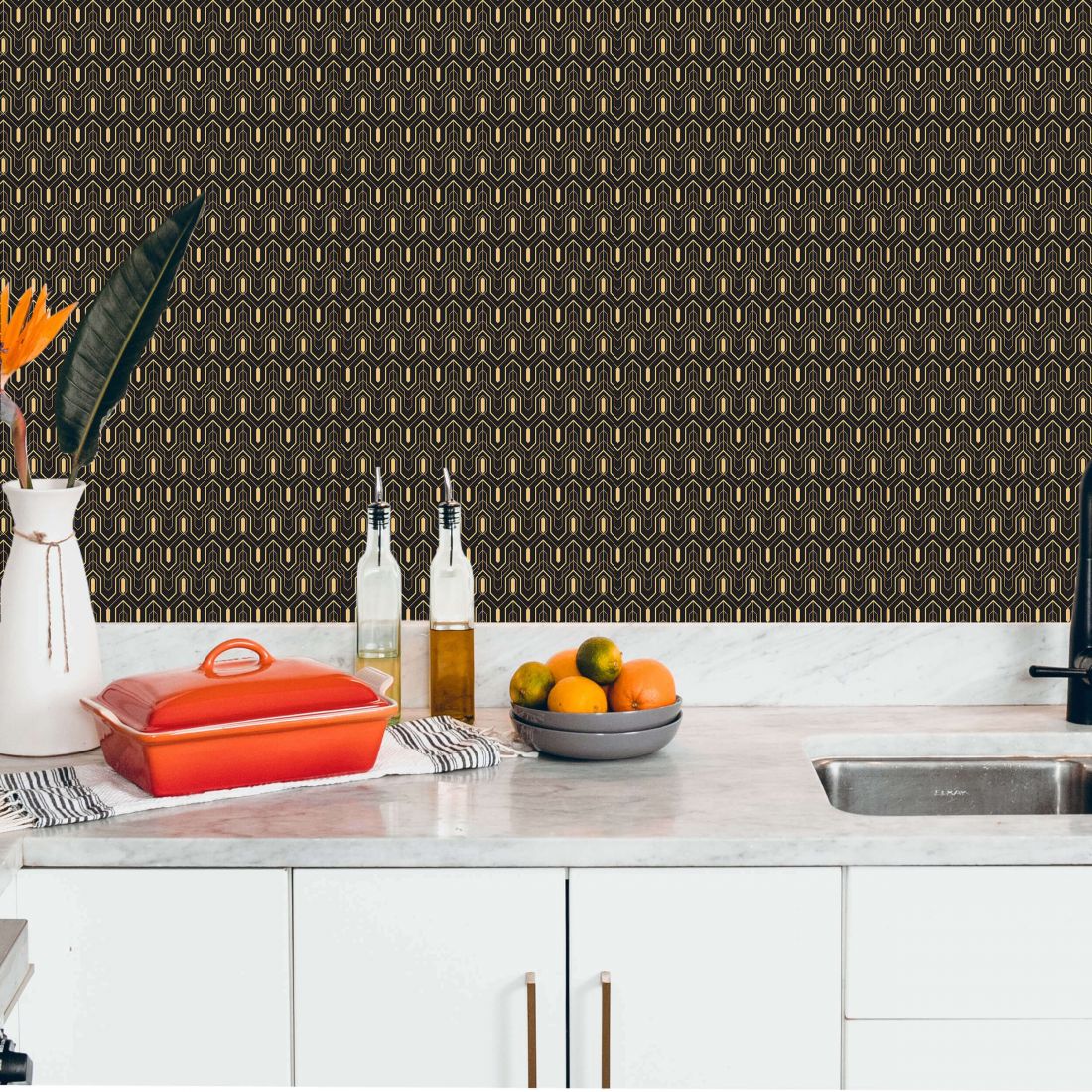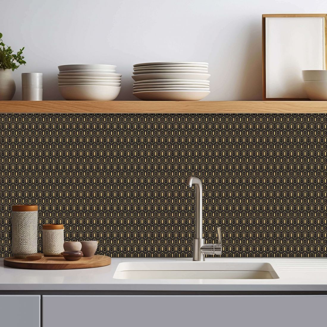 Crédence adhésive art déco noir à motifs