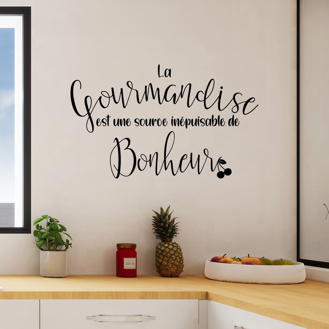 Apportez une petit touche décorative originale à votre cuisine avec ce sticker mural citation "la gourmandise est une source inépuisable de bonheur". Une façon simple de décorer et personnaliser votre cuisine.