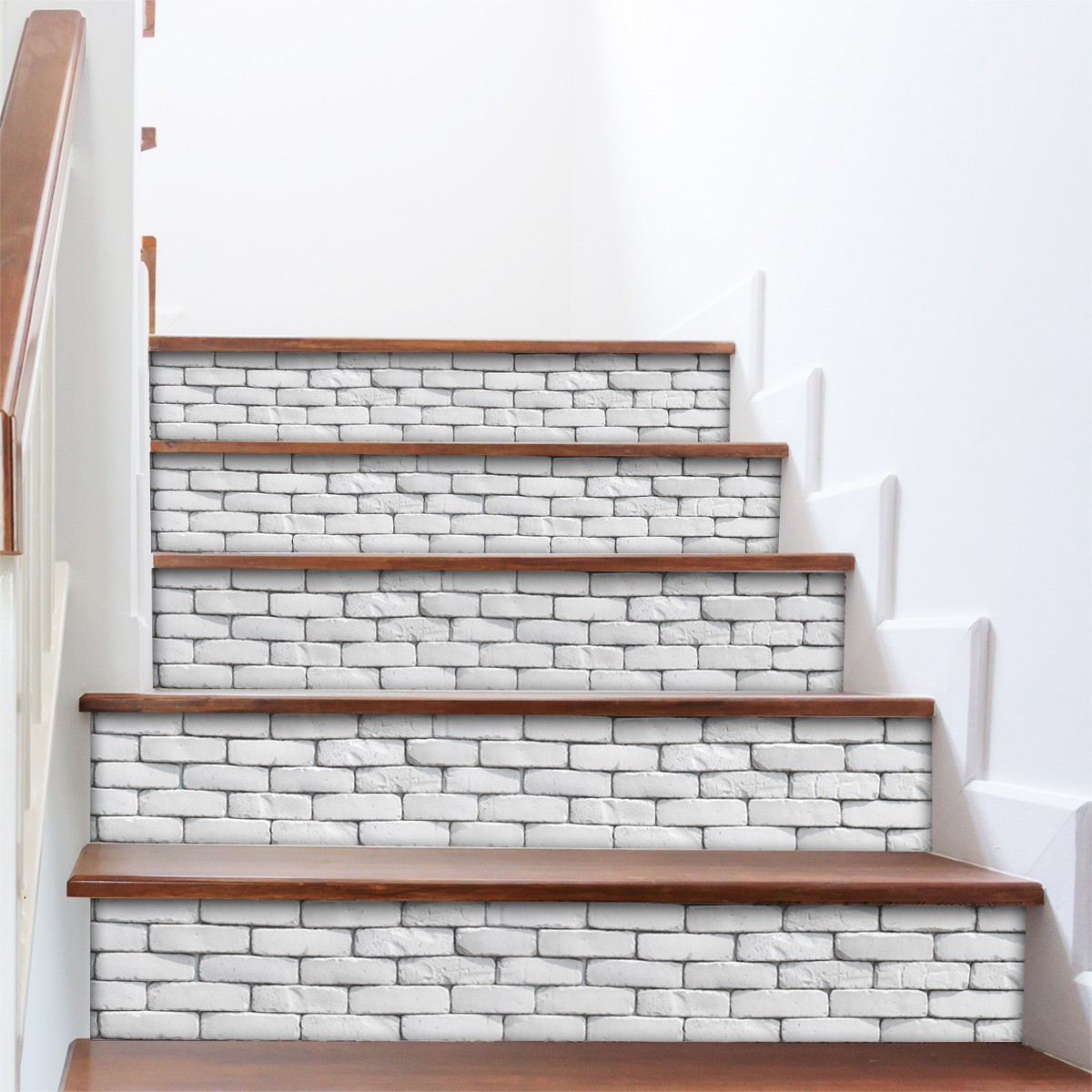 Kit de 5 stickers autocollant imprimés décoratifs imitation brique blanche pour donner du style à vos contremarches d'escaliers. 5 Stickers de 20x100cm.