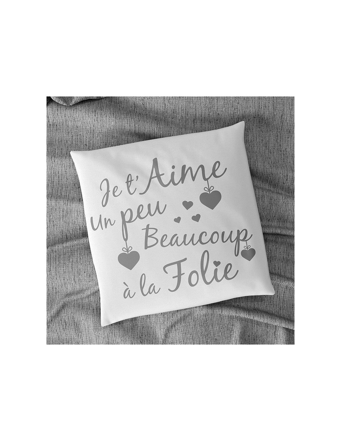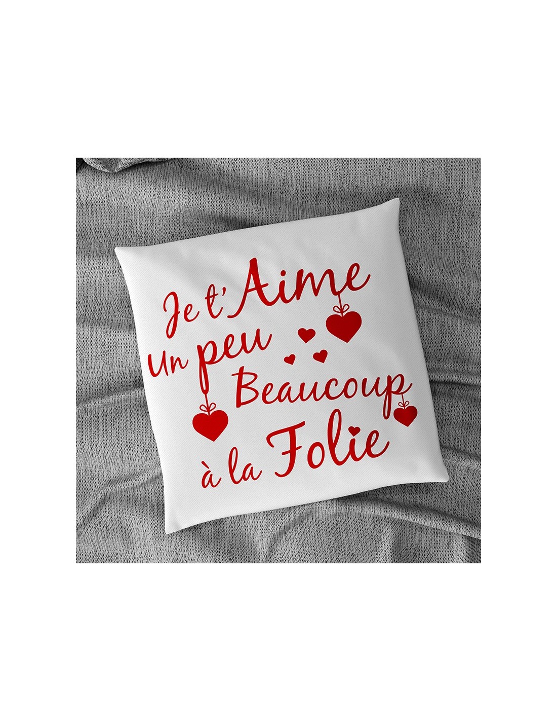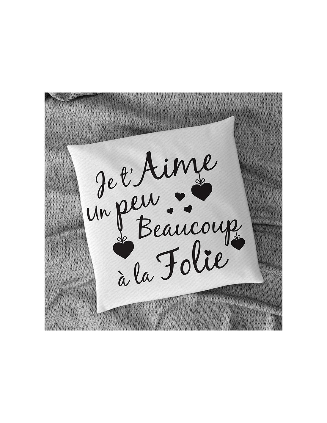 Une façon originale et simple pour personnaliser n'importe quel textile. Ce flock texte je t'aime, un peu, beaucoup, à la folie peut être appliquer sur une house de coussin comme sur un vêtement. Ce produit peut être appliqué sur matière 100% coton, 100% polyester et poly/cotton.