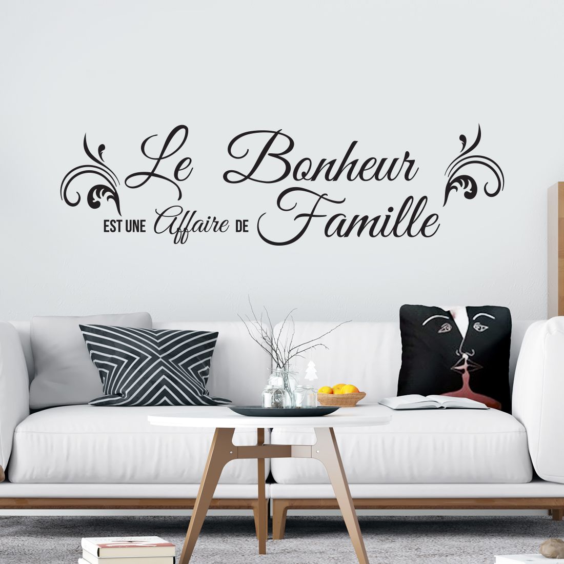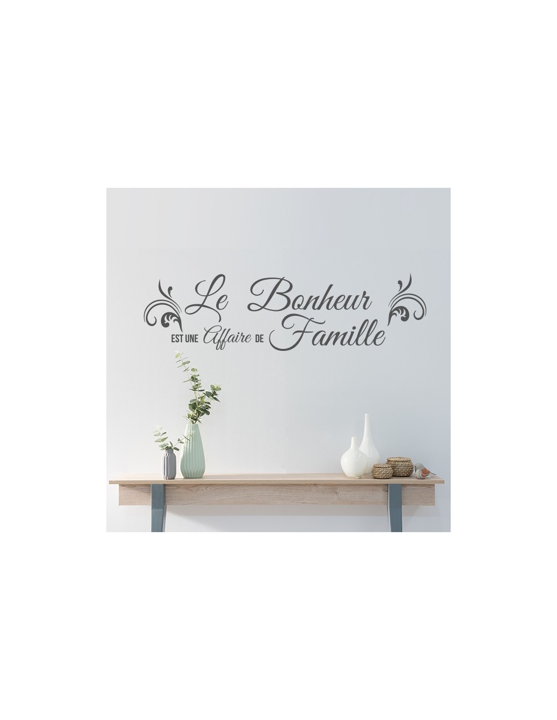 Esprit de famille ? Ce sticker mural citation est fait pour vous et votre petite famille. Le sticker Le bonheur est une affaire de famille apportera une jolie touche décorative à votre intérieur.
