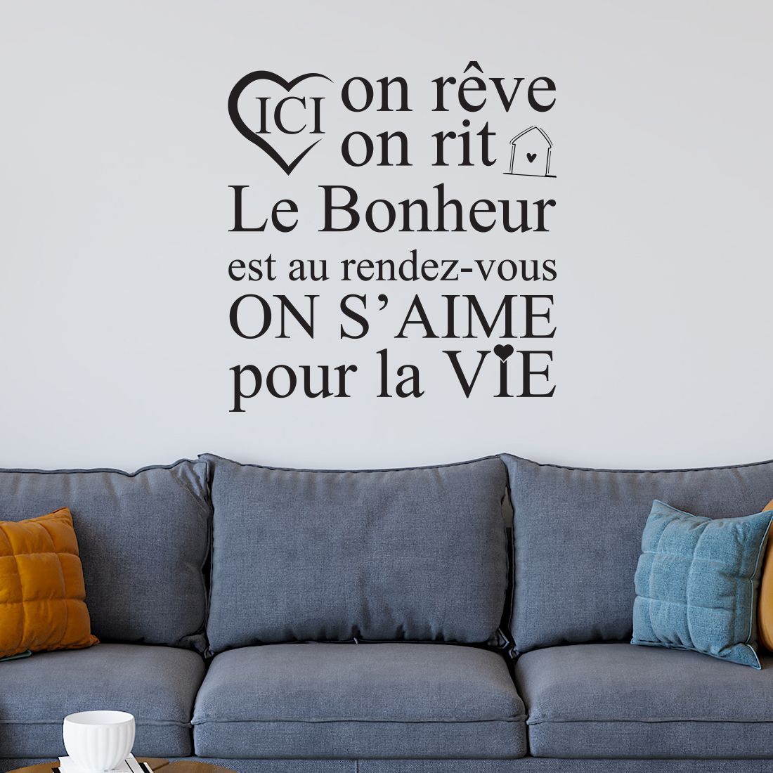Un beau texte pour décorer votre intérieur avec originalité et amour. Affichez fièrement l'amour qui plane dans votre foyer en personnalisant ce sticker pour qu'il se fonde parfaitement avec votre décoration intérieure.