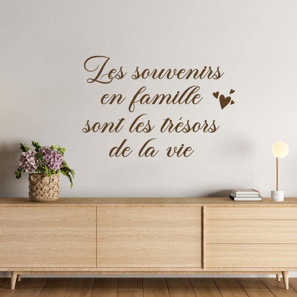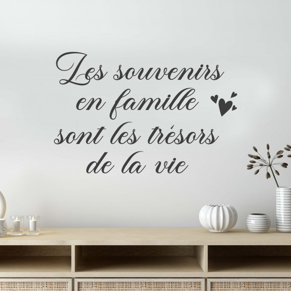 Envie d'une jolie décoration murale ? Optez pour ce sticker citation famille à personnaliser : "Les souvenirs en famille sont les trésors de la vie". Une touche d'amour et de douceur pour parfaire votre déco intérieure avec originalité.
