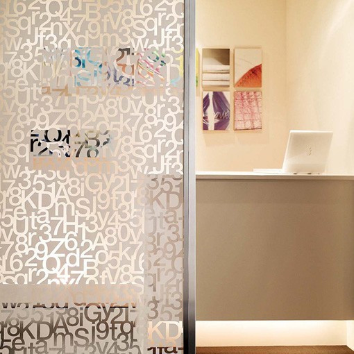 Film opaque blanc design pour surface vitrée. Une bonne alternative à l'adhésif dépoli classique pour la décoration de fenêtre, vitre, paroi ou toute autre surface vitrée de votre intérieur.
