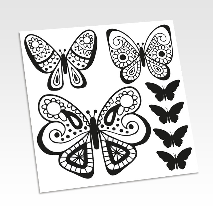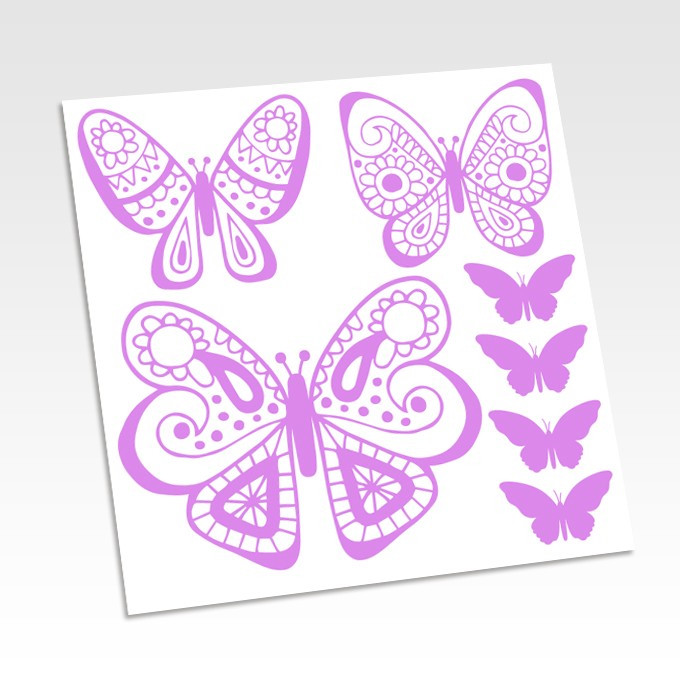Planche de 7 stickers papillons. 4 silhouettes de papillons plus 3 papillons au design orginal pour une décoration personnelle réussi.