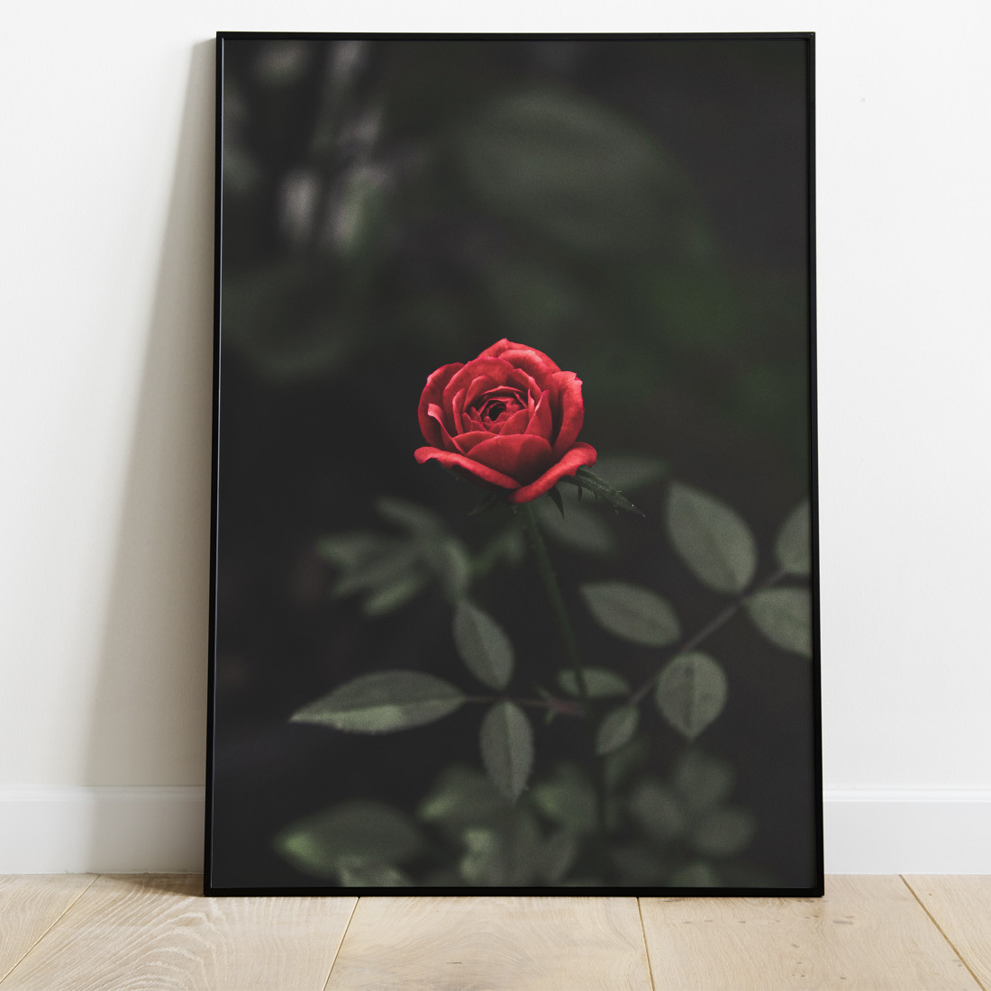 Sublime visuel photo en poster d'une rose avec un contraste de lumière du plus jolie effet. Une photo qui saura sublimer votre intérieur par sa sobriété et style.