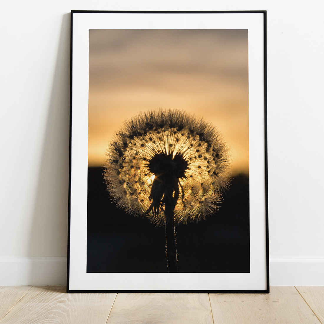 Très joli poster pissenlit avec une prise de vue incroyable au coucher du soleil.