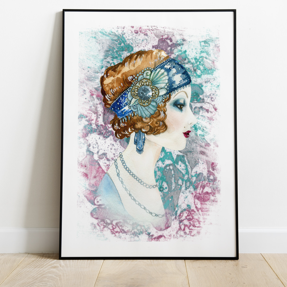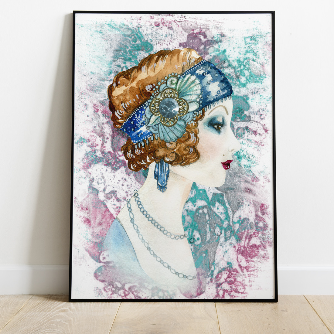 Magnifique poster déco coloré d'un portrait de femme style Charleston. Un beau poster pour décorer son intérieur avec originalité.