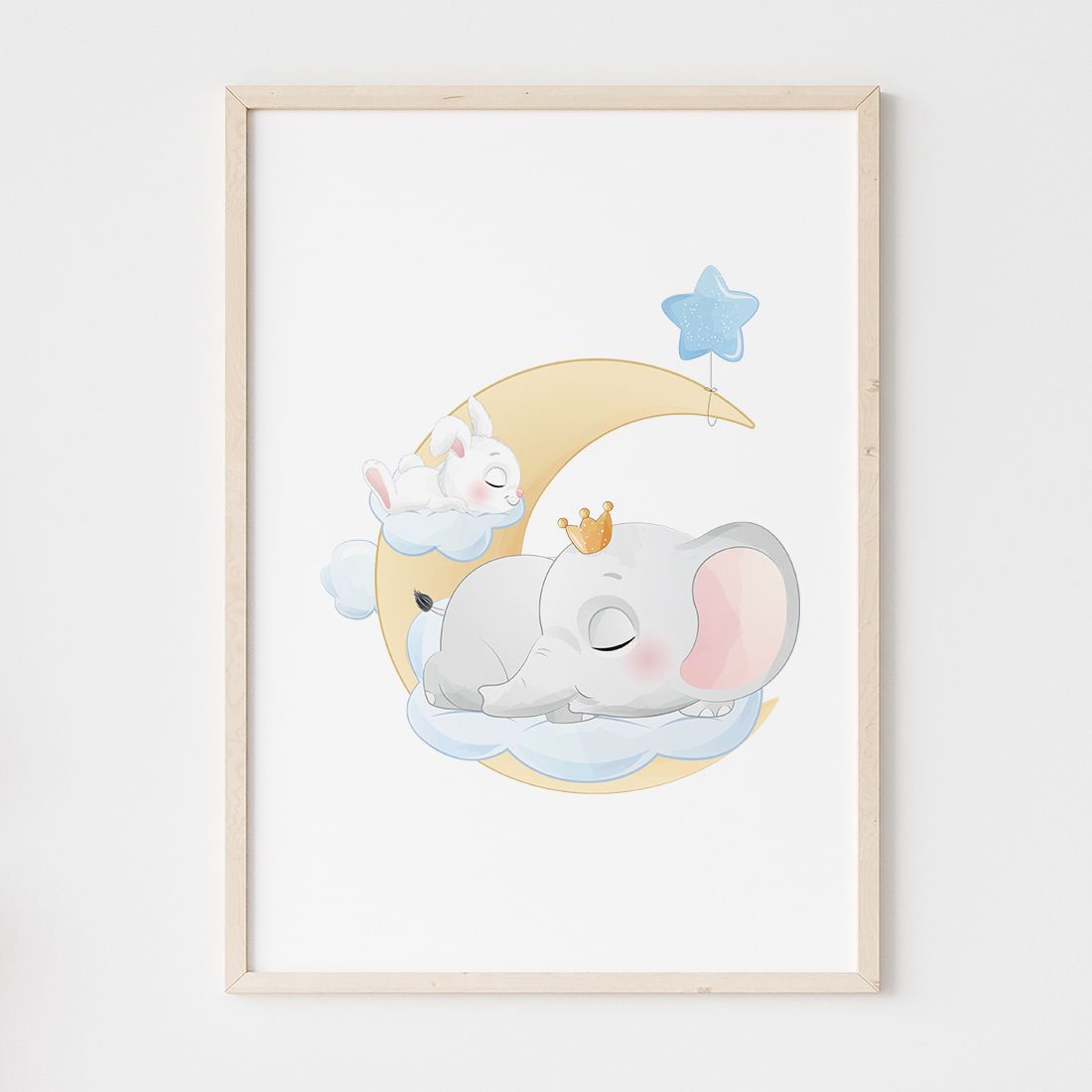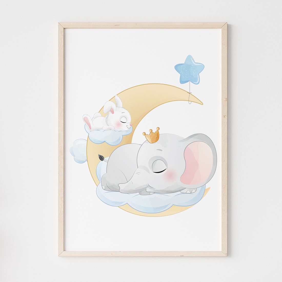 Donnez une jolie touche de douceur à la décoration de la chambre de votre enfant grâce à cette poster éléphant sur son nuage. Une affiche pleine de légèreté pour céer une magnifique décoration murale.