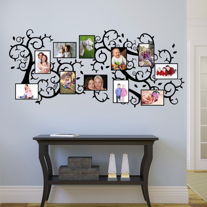 Sticker de décoration murale cadres photos composé de 11 emplacements/cadres photos au format courant 10x15cm