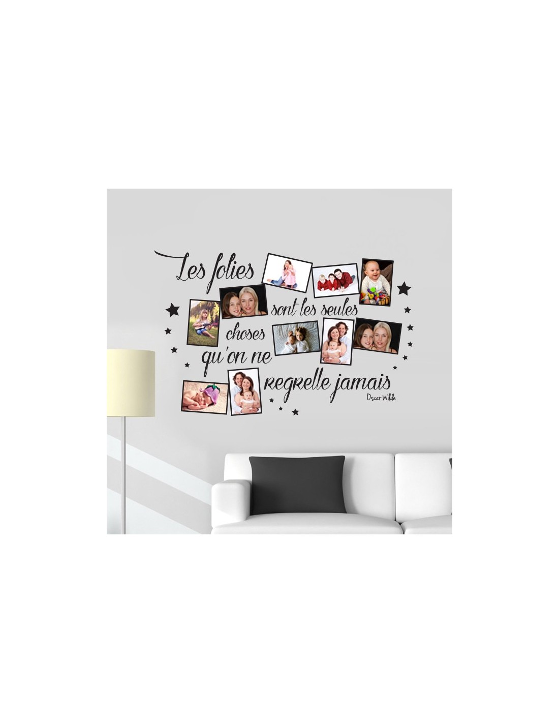 Envie de la citation sans cadres photos ? Le sticker les folies sont les seules choses que l'on ne regrette jamais est également disponible.