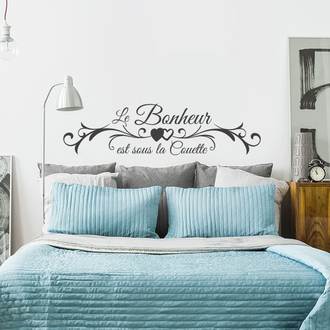C'est le sticker mural idéal pour votre chambre à coucher ! Parce que les meilleurs moments se passent souvent sous la couette bien au chaud, ce sticker citation le bonheur est sous la couette prend tout son sens et trouvera naturellement sa place dans votre chambre. Une touche d'amour joliment dissimulée derrière cette phrase en sticker.
