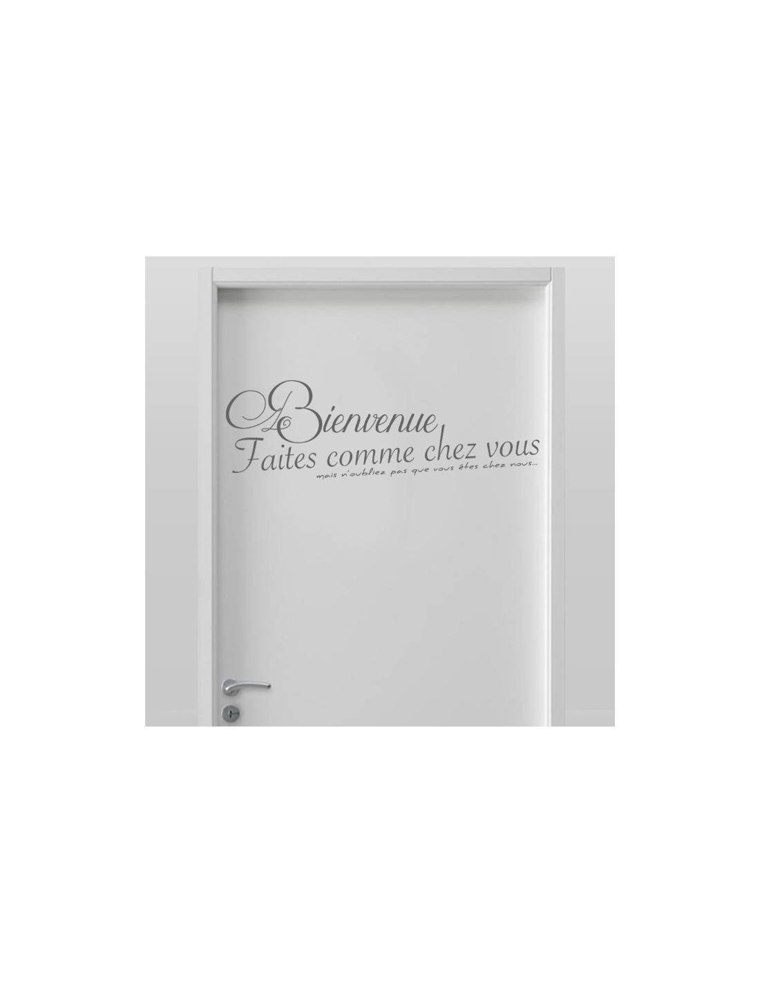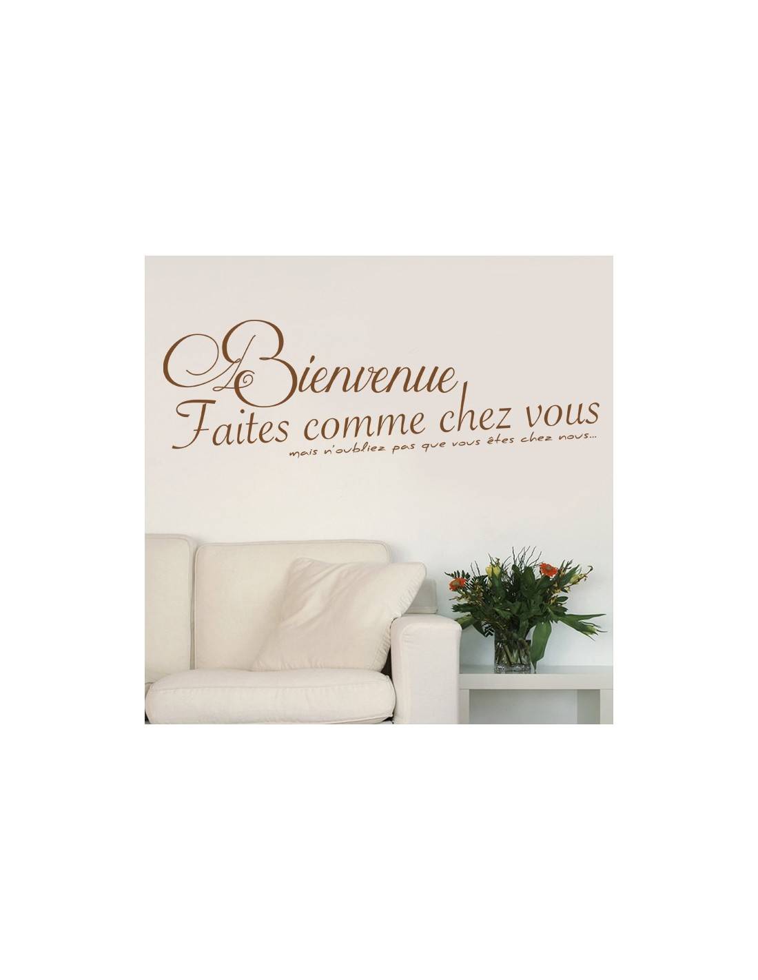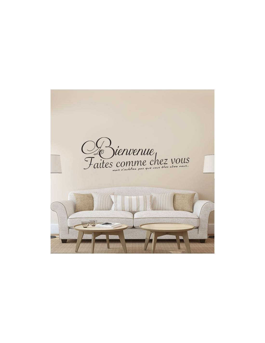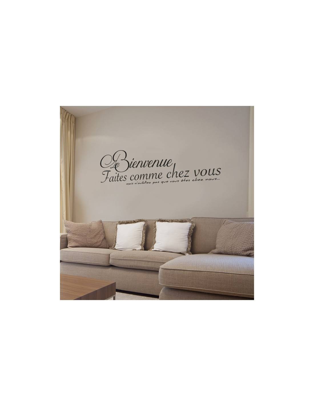 Sticker de décoration murale citation : "Bienvenue, faites comme chez vous mais n'oubliez pas que vous êtes chez nous..." Souhaitez la bienvenue chez vous avec originalité.