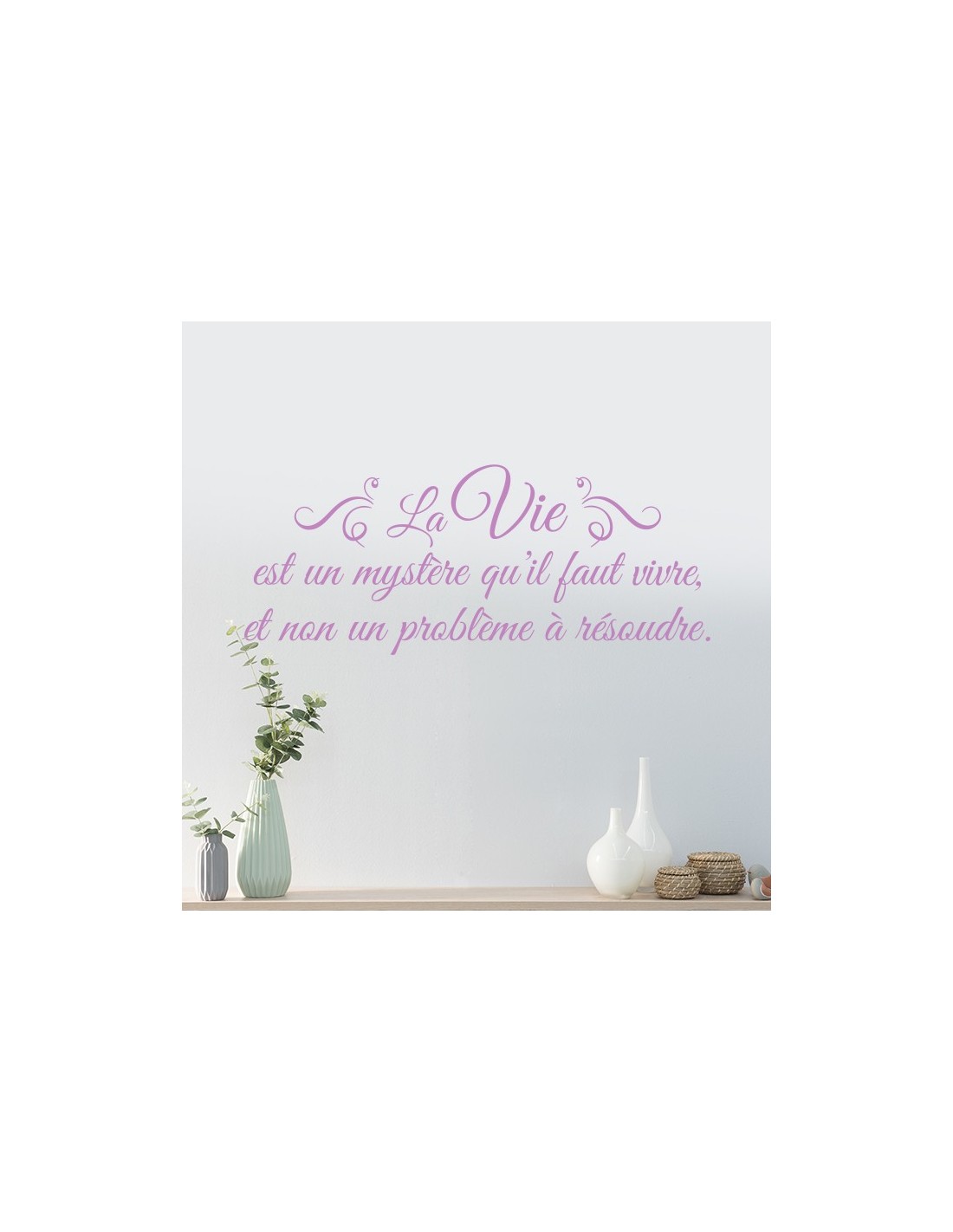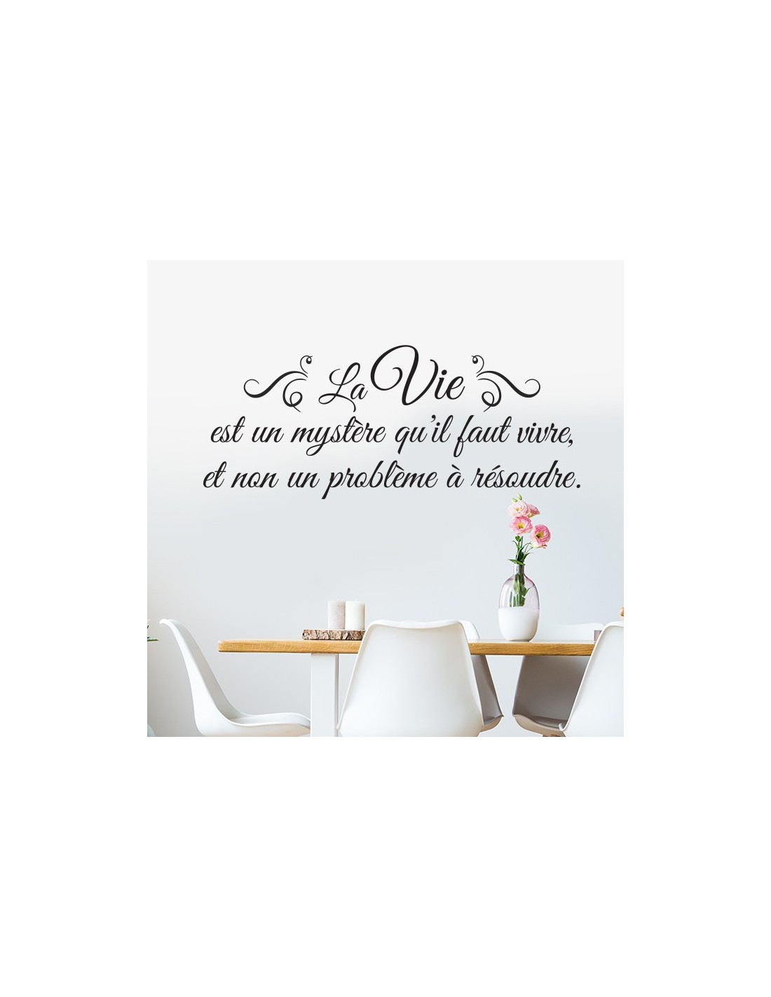 Sticker citation originale : La vie est un mystère qu'il faut vivre et non un problème à résoudre. Une très belle phrase en sticker pour décorer son intérieur de manière positive.