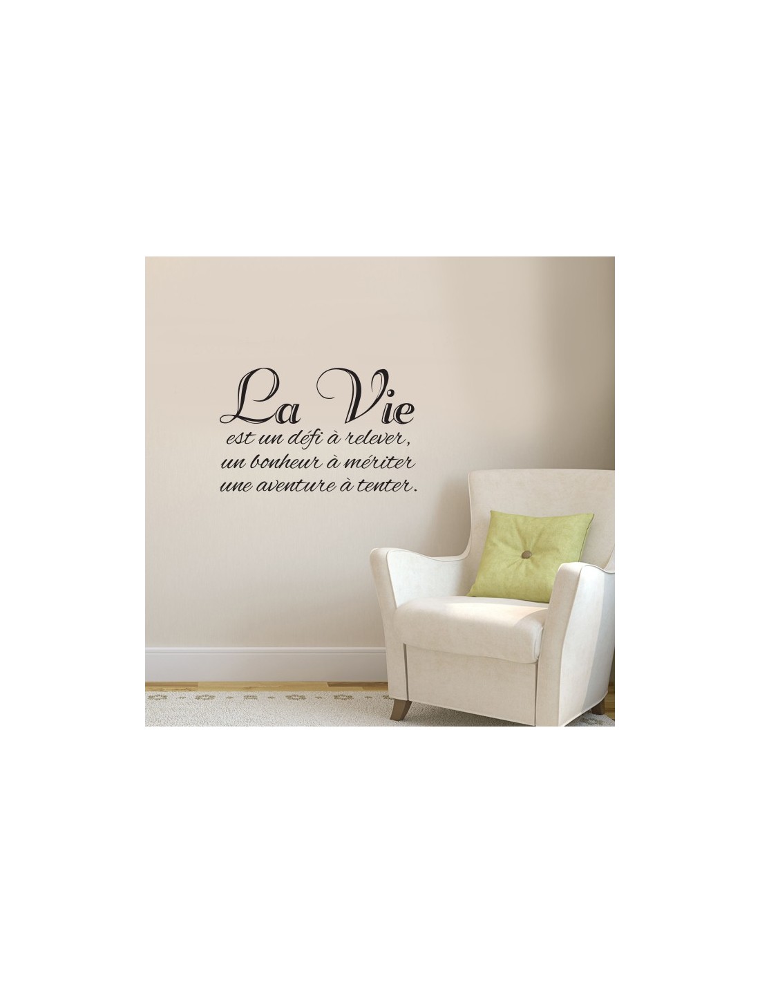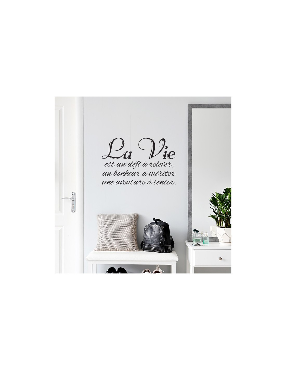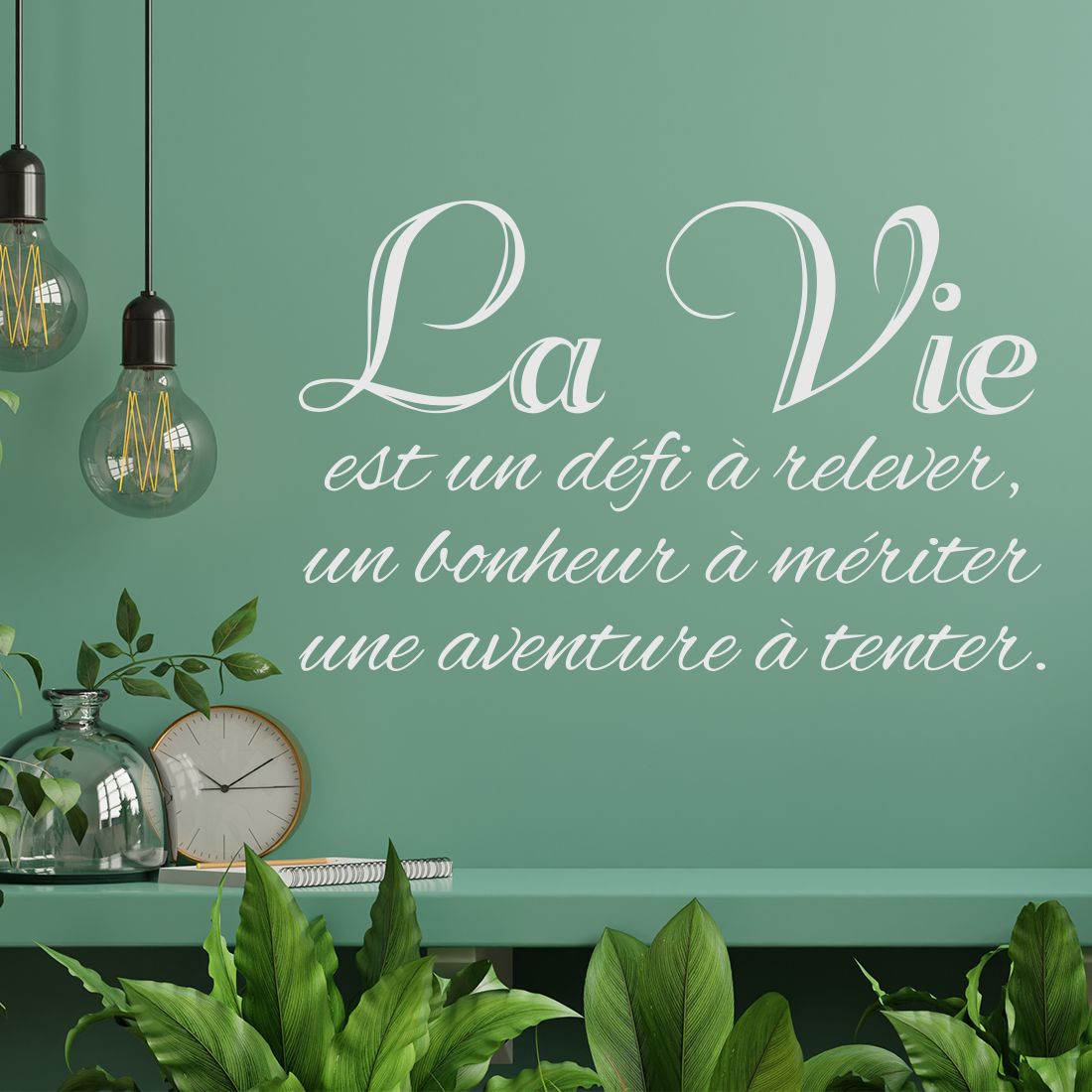 Un peu de motivation au quotidien en décorant votre intérieur avec ce sticker mural citation : La vie est un défi à relever, un bonheur à mériter, une aventure à tenter. Il apportera une petit source d'inspiration et de motivation tout en donnant du cachet à votre décoration d'intérieur quel que soit la pièce dans laquelle il se trouve.