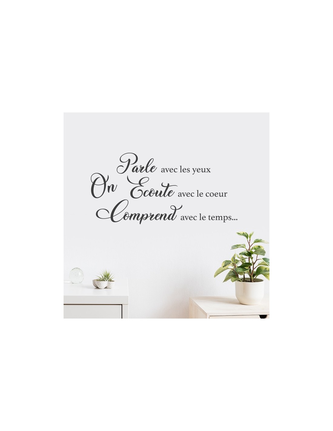 Apportez une touche de douceur et de bien vaillance à votre intérieur en le décorant subtilement avec ce sticker texte "On parle, on écoute, on comprend...". Il saura sans aucun doute trouver sa place dans votre intérieur pour le sublimer avec ses quelques mots.