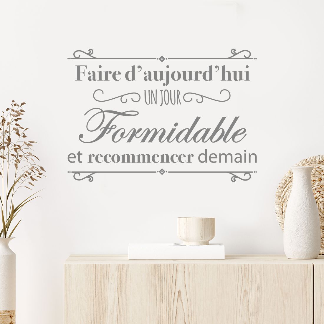 Décorez votre intérieur avec une petite touche d'encouragement, de motivation avec ce sticker mural citation "Faire d'aujourd'hui un jour formidable et recommencer demain".