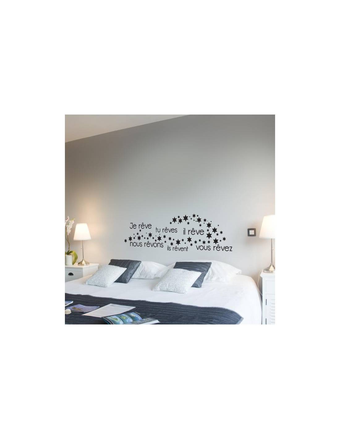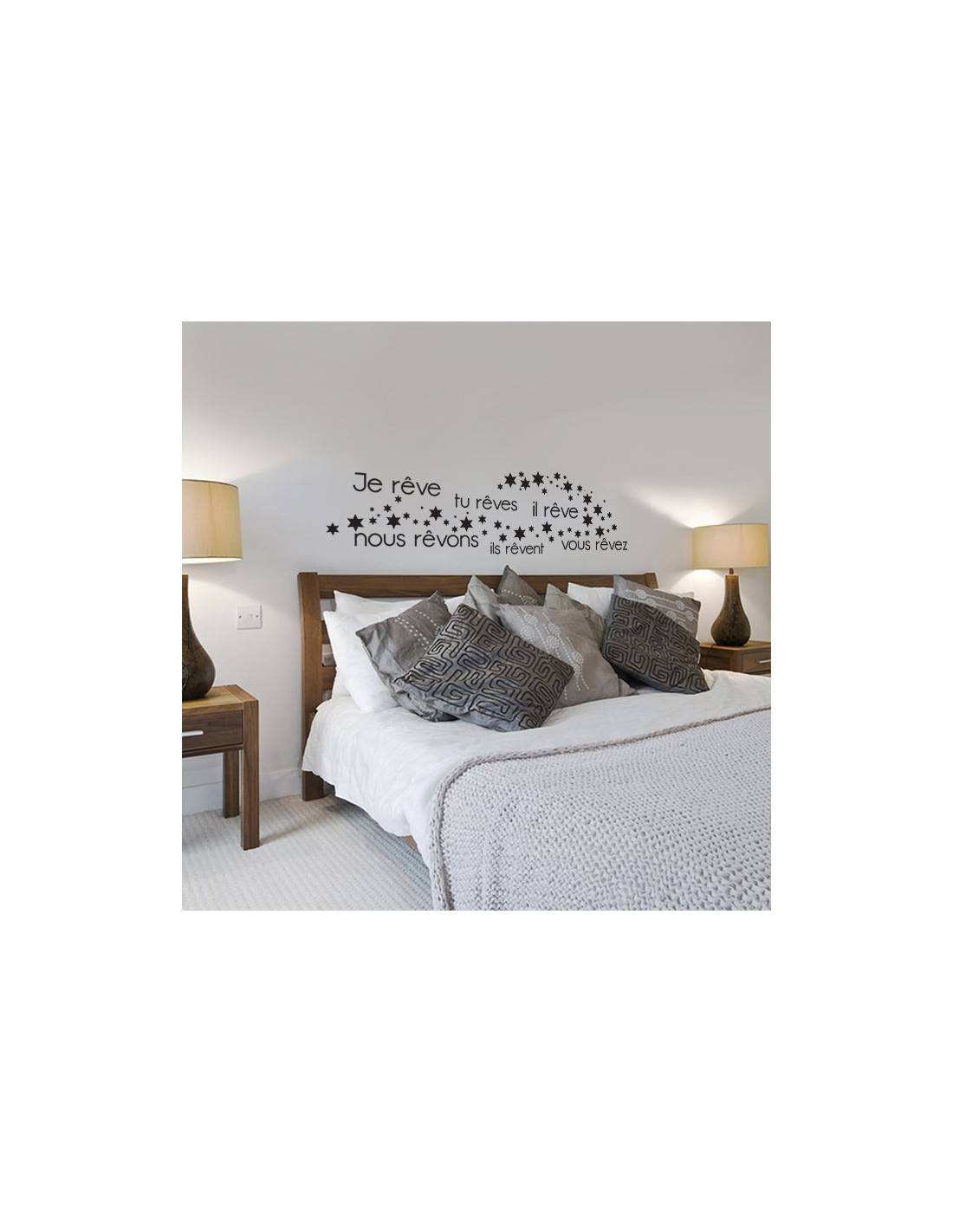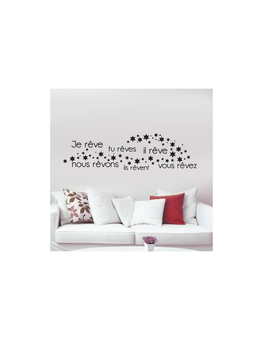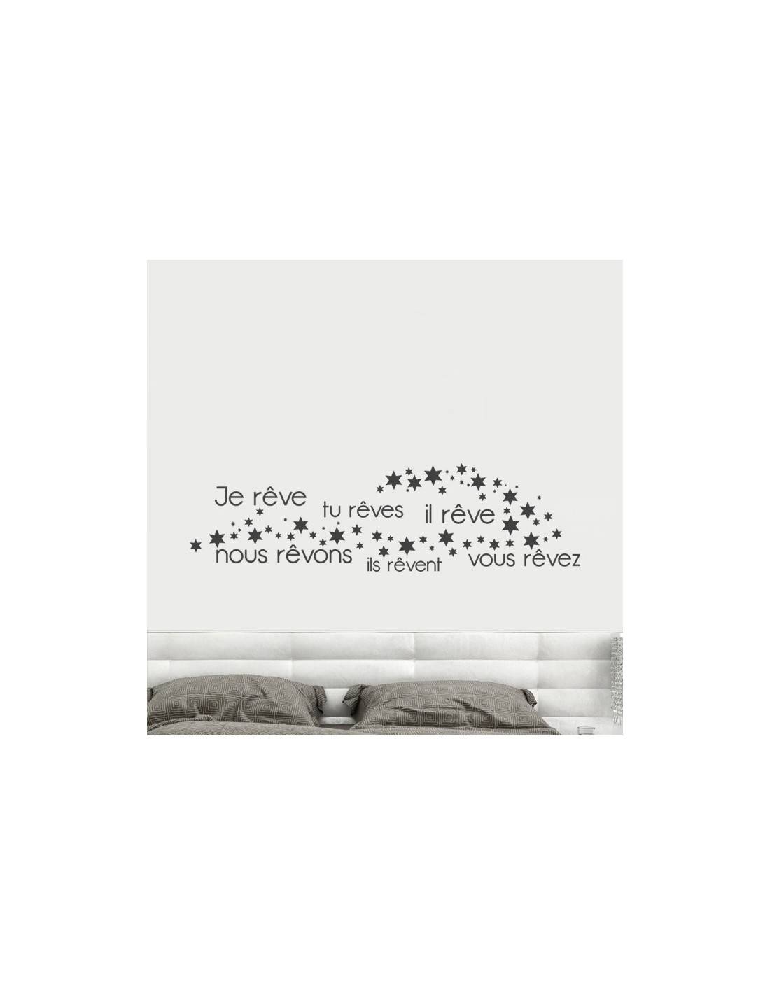 Sticker de décoration d'intérieur texte : Je rêve, tu rêves, il rêve... accompagné d'étoiles.