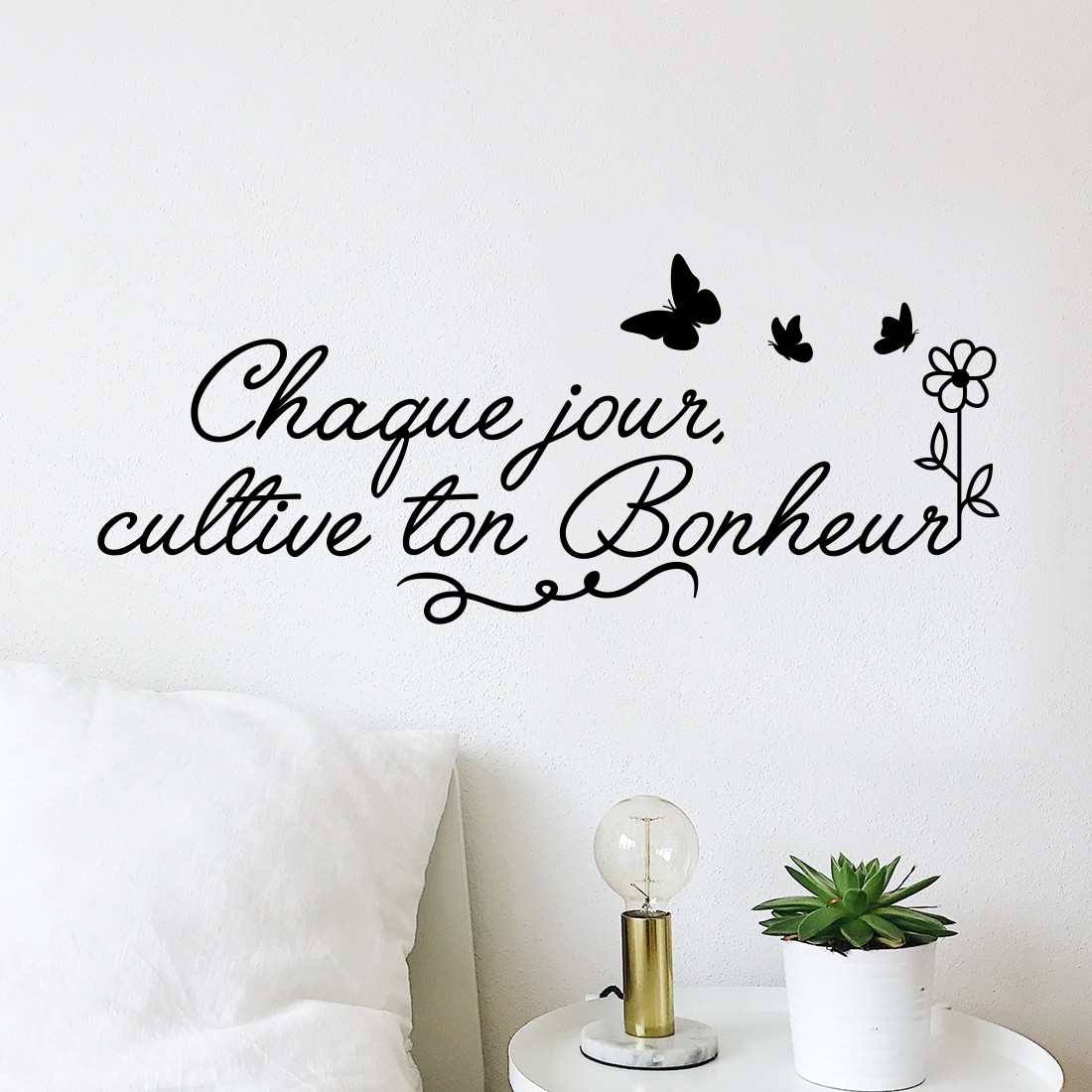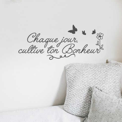 Donnez à votre déco d'intérieur une touche de motivation avec ce stickers citation : "Chaque jour, cultive ton bonheur".