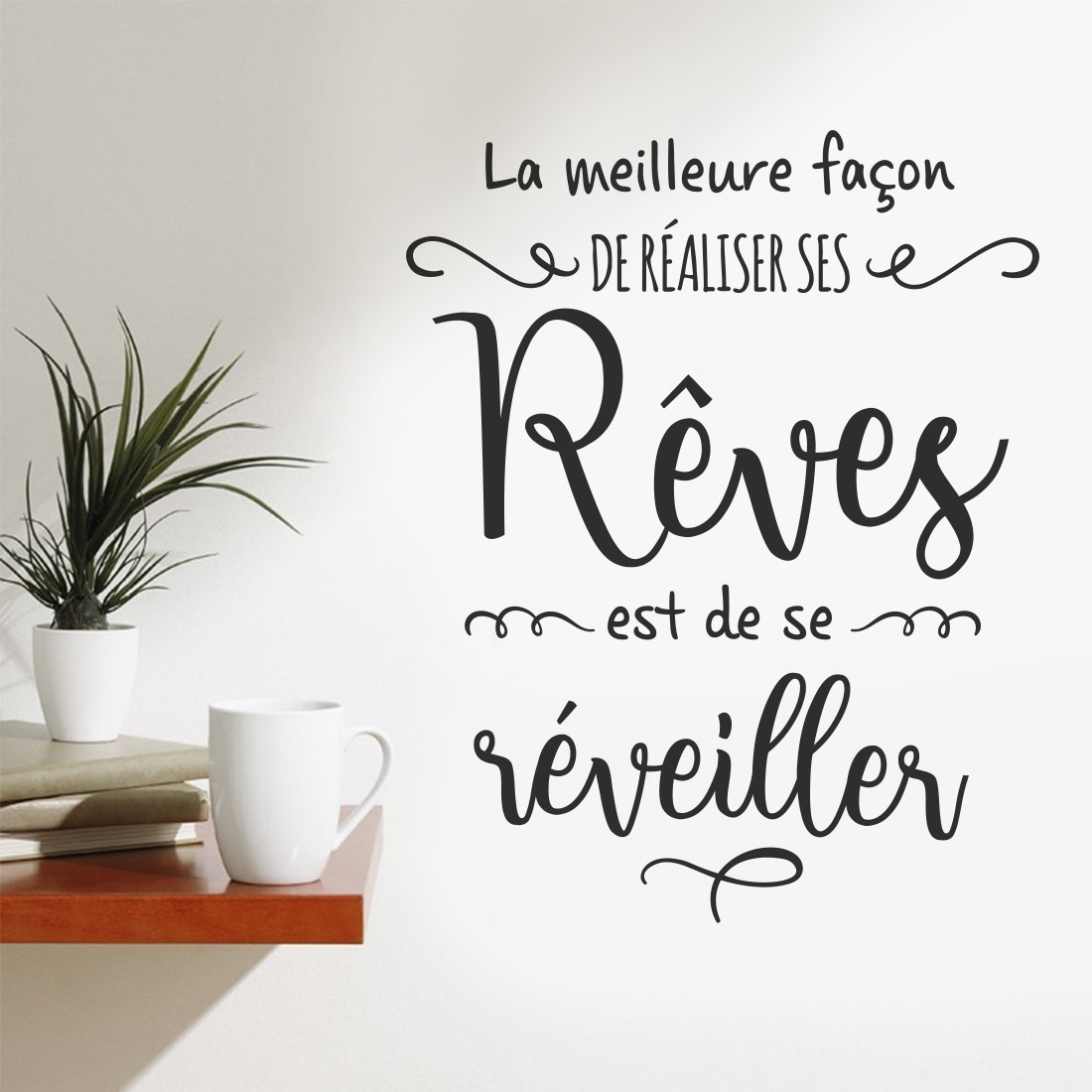 Apportez de la positivité et de la motivation à votre décoration d'intérieur en l'agrémentant de ce sticker mural citation "La meilleure façon de réaliser ses rêves est de se réveiller". Une manière originale de décorer une pièce en y ajoutant des stickers muraux.