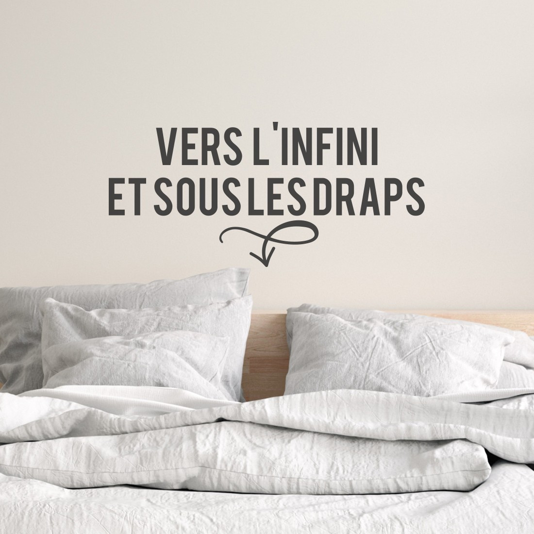 Une pointe d'humour et de sous-entendus avec ce sticker citation originale pour décorer votre chambre accoucher. Vers l'infini et sous les draps...