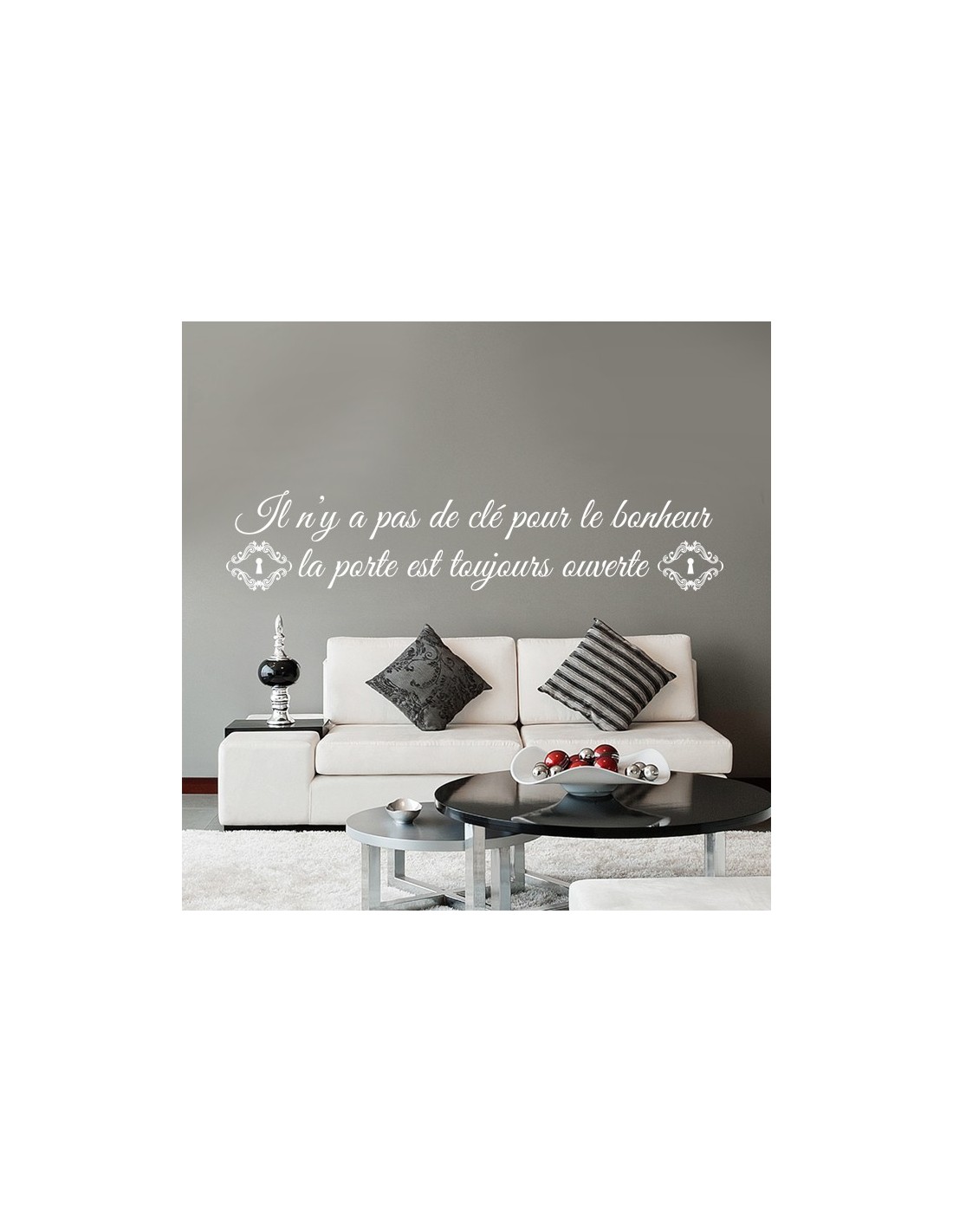 Stickers citation thème bonheur : "Il n'y a pas de clé pour le bonheur, la porte est toujours ouverte"