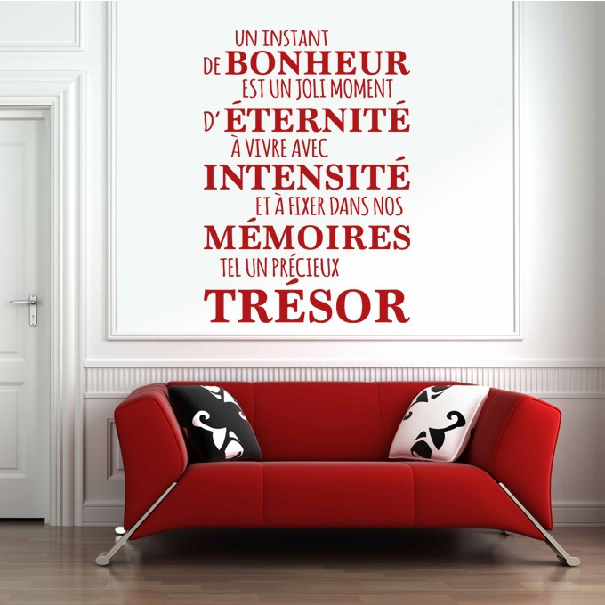 Stickers citation bonheur : "Un instant de bonheur est un jolie moment d'éternité à vivre avec intensité et à fixer dans nos mémoires tel un précieux trésor"