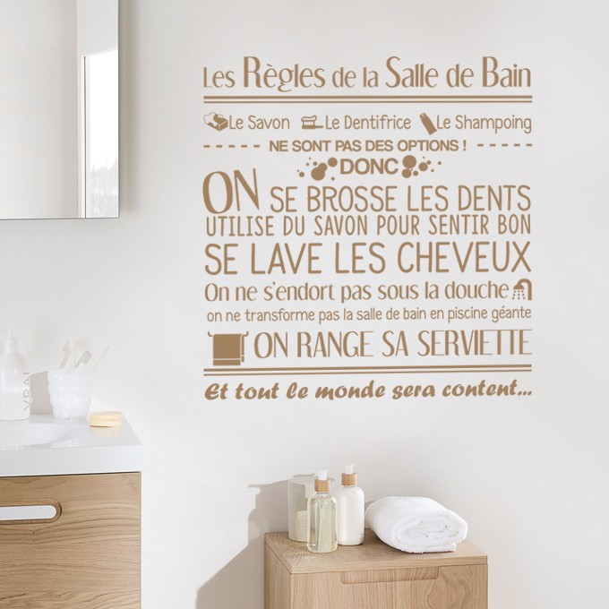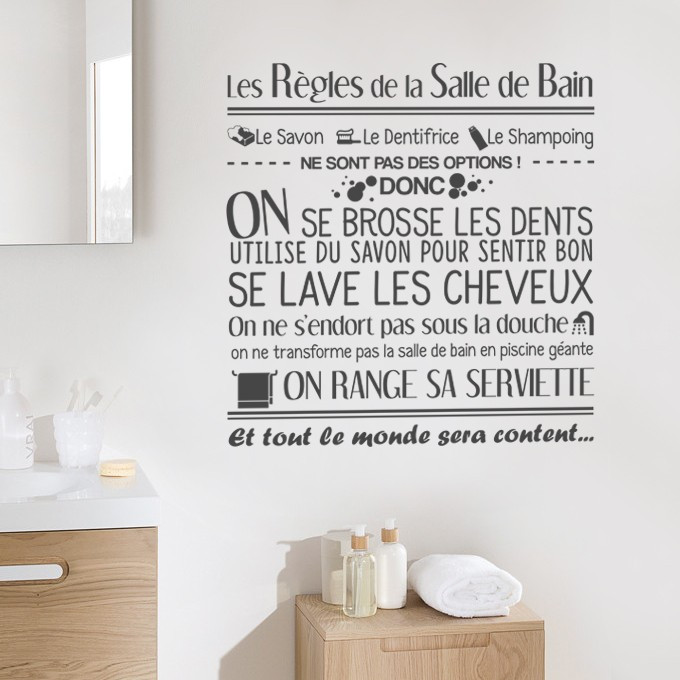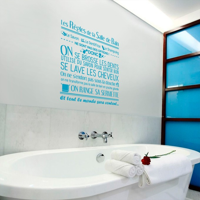 A découvrir aussi dans la même catégorie de stickers muraux pour la salle de bain, le sticker règlement de la salle de bain. Sticker mural également personnalisable pour décorer votre salle de bain.