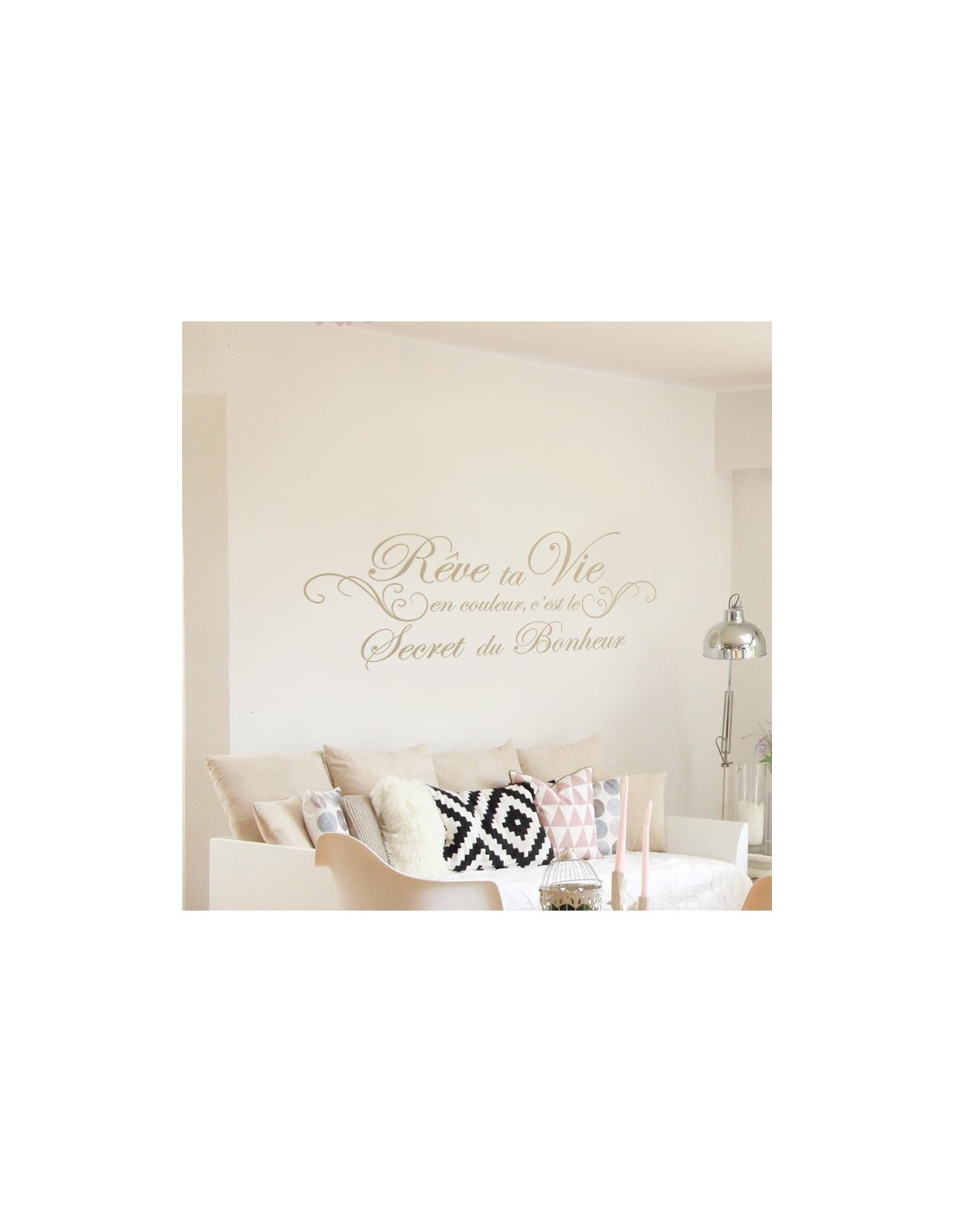 Sticker citation de décoration murale : "Rêve ta vie en couleur, c'est le secret du bonheur"