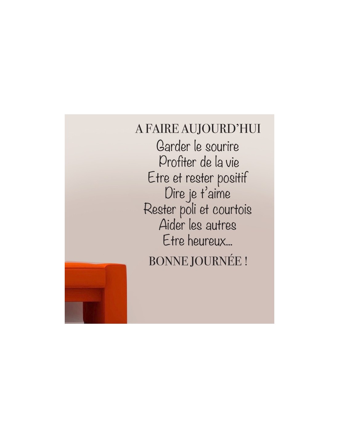 Texte du sticker : "A faire aujourd'hui : Garder le sourire, profiter de la vie, être et rester positif, dire je t'aime, rester poli et courtois, aider les autres, être heureux... Bonne journée !"