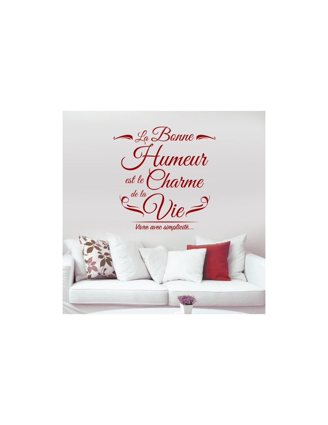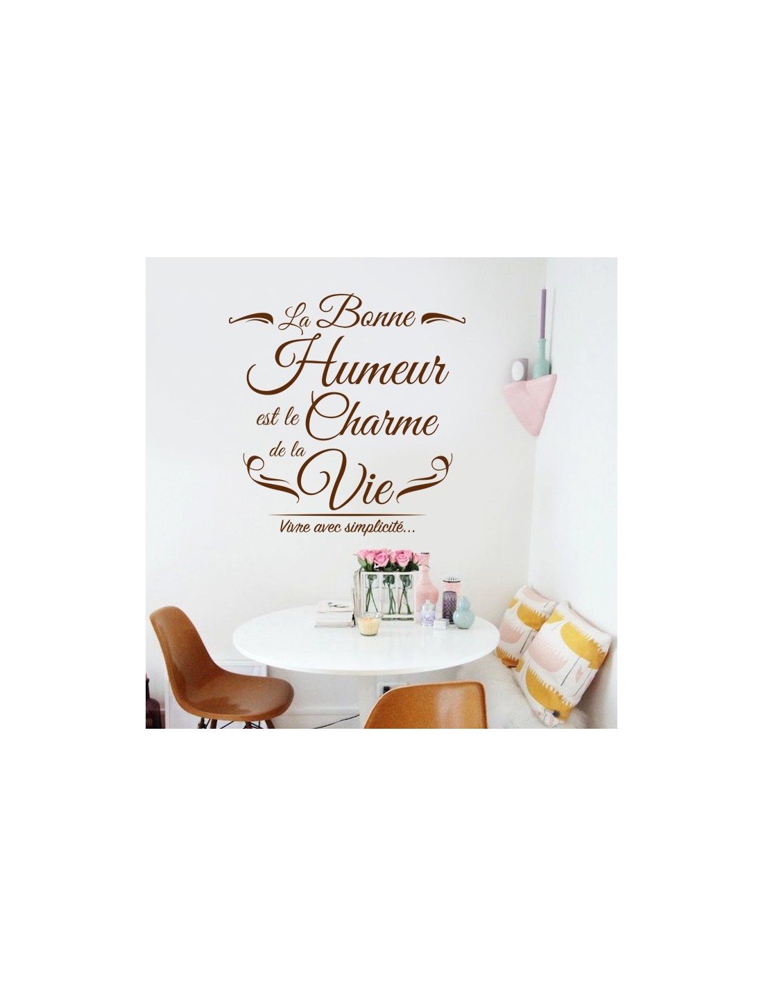 Sticker citation "vivre avec simplicité" : La bonne humeur est le charme de la vie