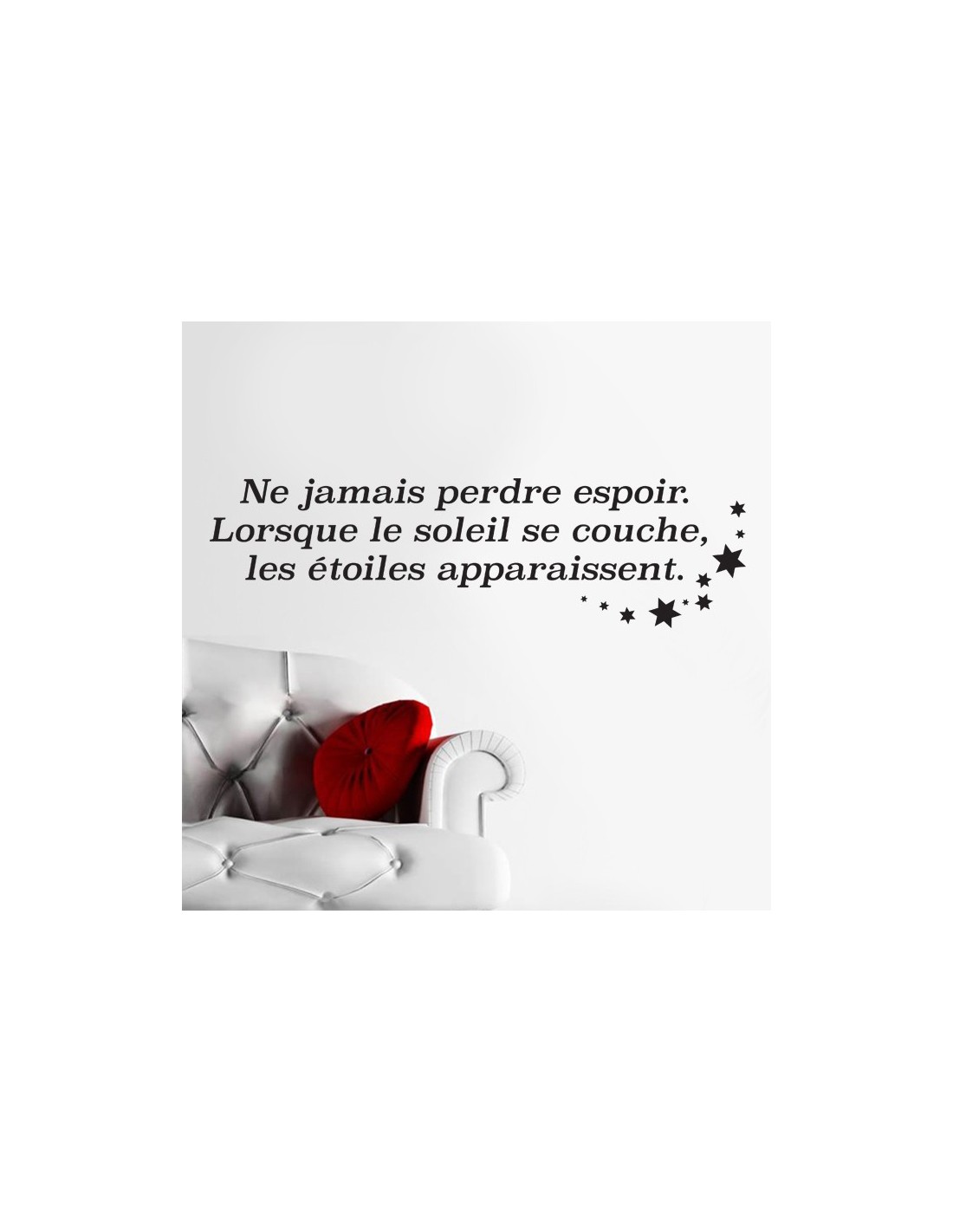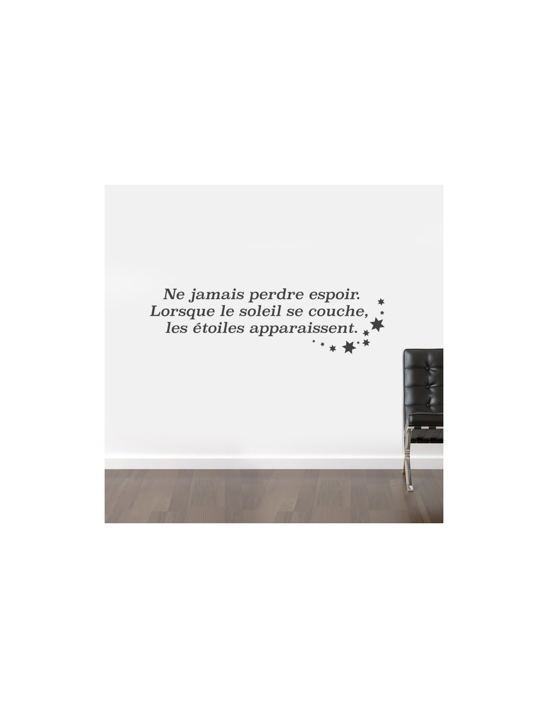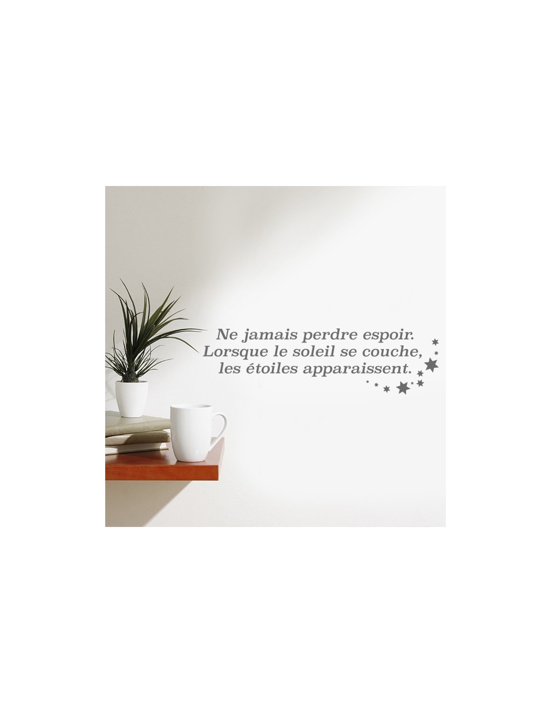 Sticker de décoration citation : Ne jamais perdre espoir. Quand le soleil se couche les étoiles apparaissent. Décorez votre intérieur avec cette citation courte.