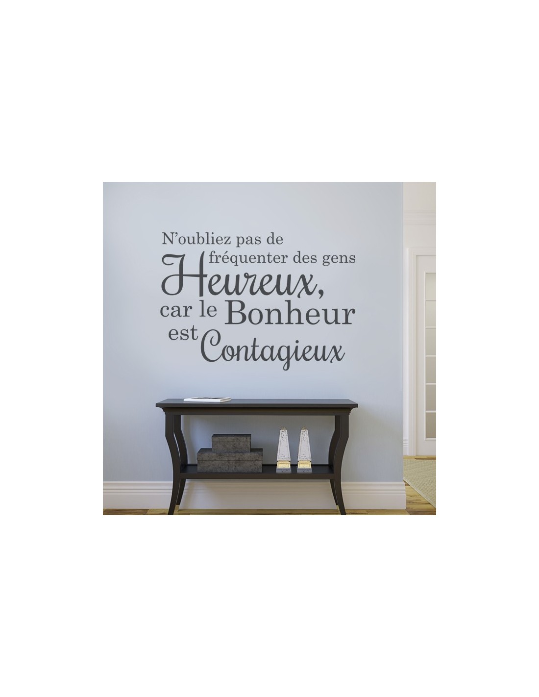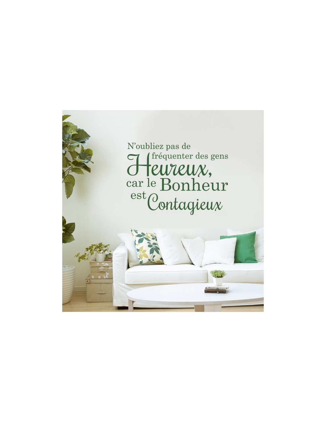 Sticker citation sur le bonheur pour personnaliser sa décoration d'intérieur avec originalité : "N'oubliez pas de fréquenter des gens heureux car le bonheur est contagieux."