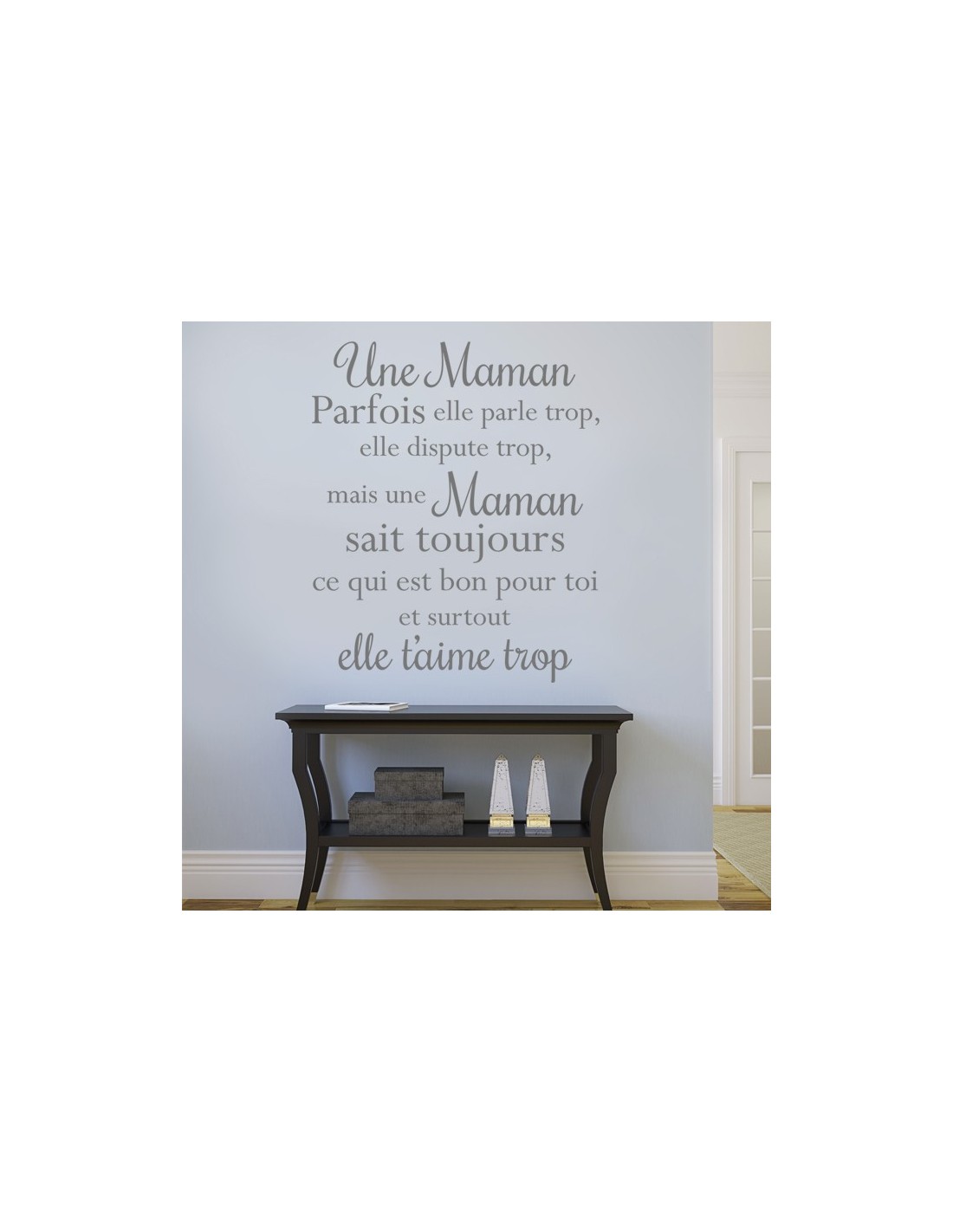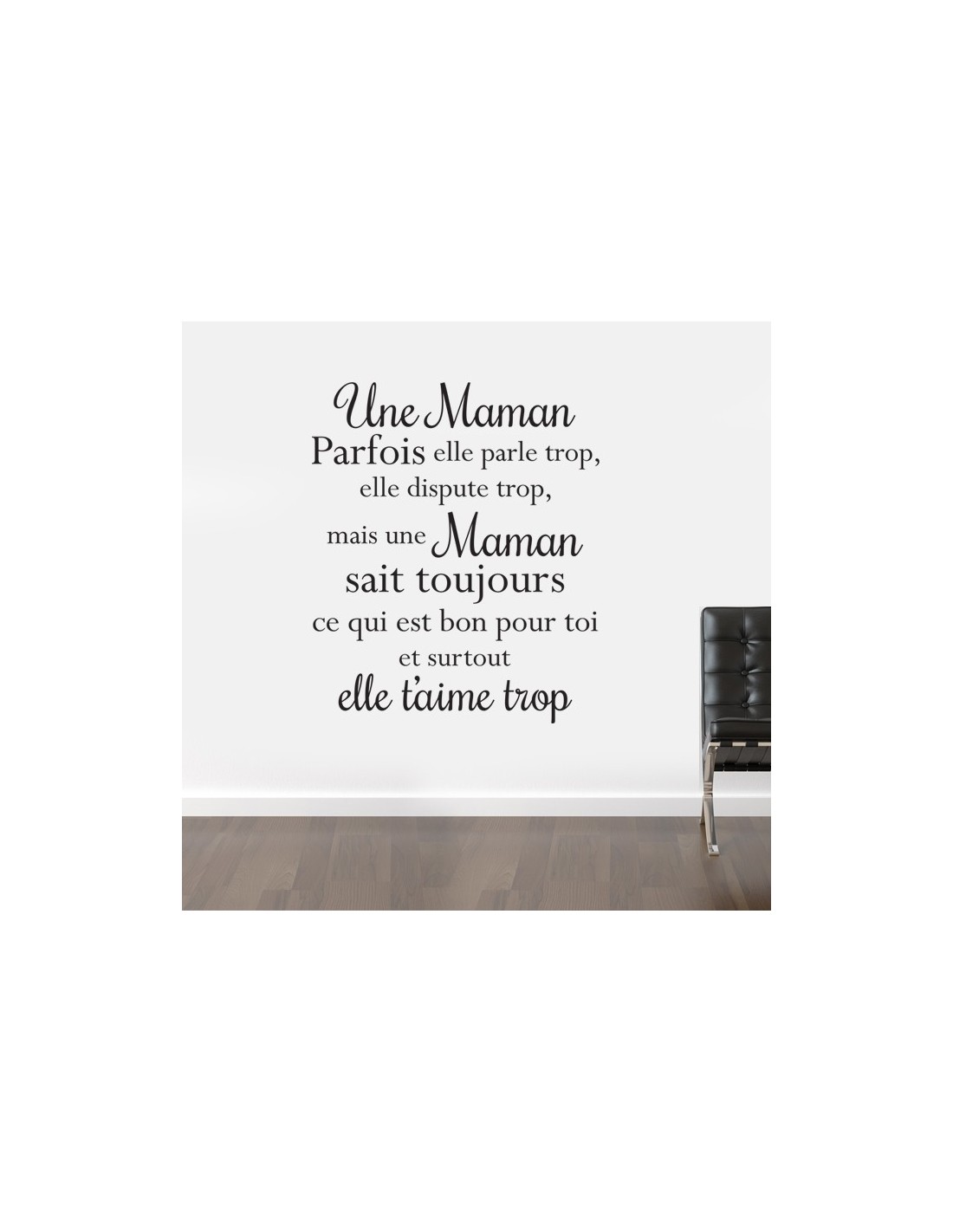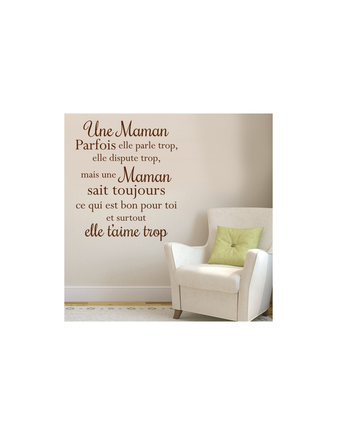 Une décoration murale originale pour les mamans avec ce sticker texte "Une maman parfois...". Un texte plein de vérité sur l'amour maternelle qui saura trouver facilement sa place dans votre intérieur.