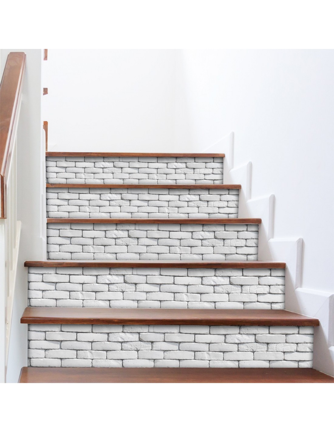 Kit de 6 stickers autocollant imprimés décoratifs imitation brique blanche pour donner du style à vos contremarches d'escaliers. 6 Stickers de 20x100cm.
