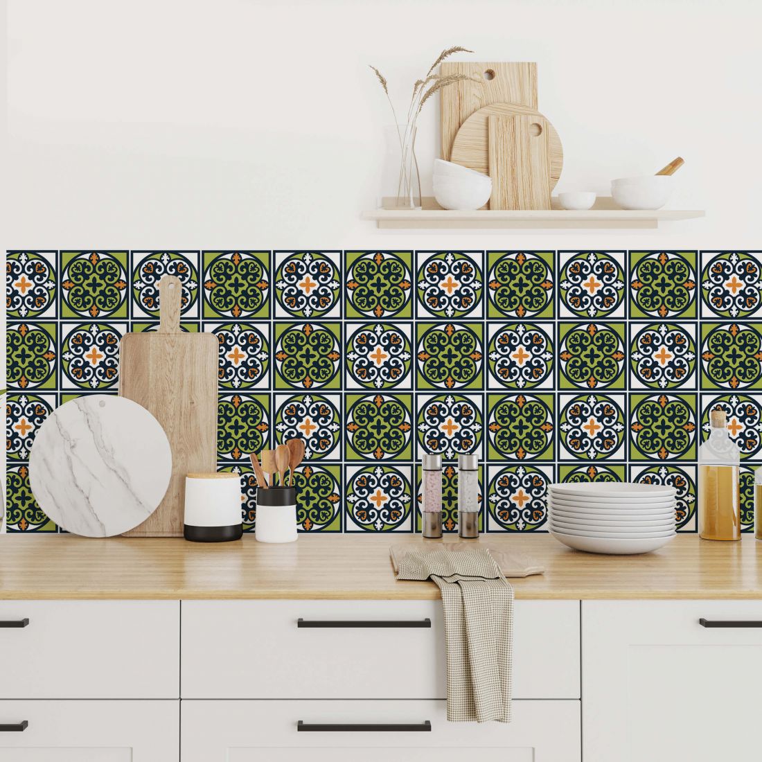 Astuce déco : Mixez différent motif de sticker pour donner encore plus de style à votre carrelage. N'hésitez pas non plus à varier les couleurs selon vos envies.