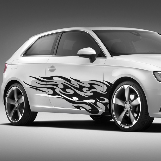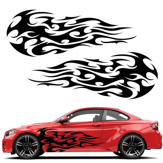 Kit de 2 stickers décoration carrosserie style flamming pour voiture et autres véhicules .