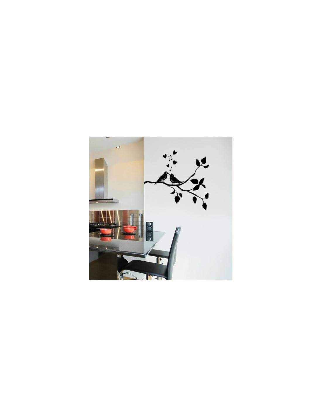 Sticker déco représentant un couple d'oiseaux amoureux sur une branche d'arbre.