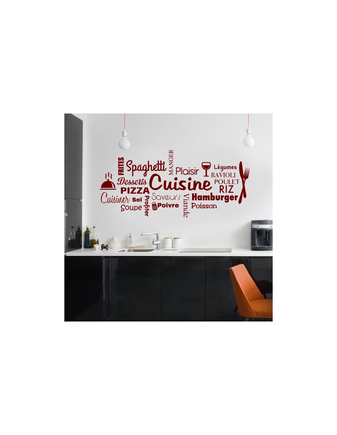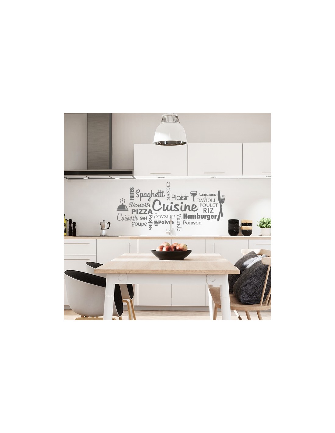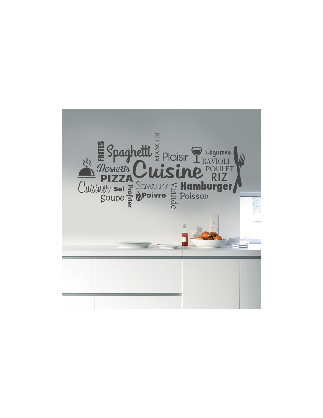 Sticker mural de décoration pour la cuisine. Un pêle-mêle de mots sur le thème de la cuisine pour donner à votre cuisine une déco originale.