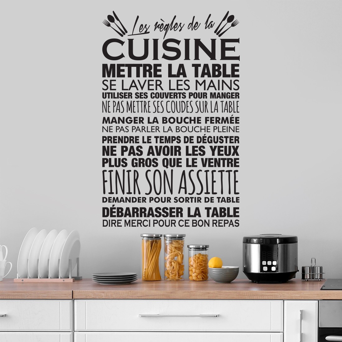 Une manière originale de décorer votre cuisine grâce à ce sticker mural les règles de la cuisine. Fixez les règles de votre cuisine sans plus attendre.