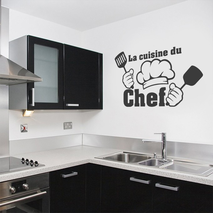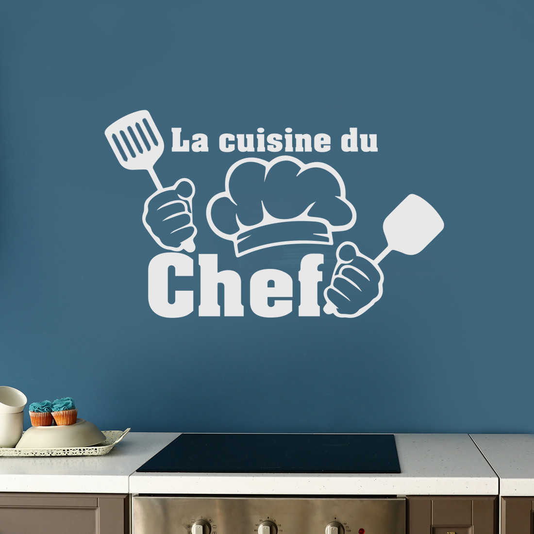 Sticker déco pour cuisine "La cuisine du chef" illustré avec ses ustensiles et sa toque de chef cuisinier.