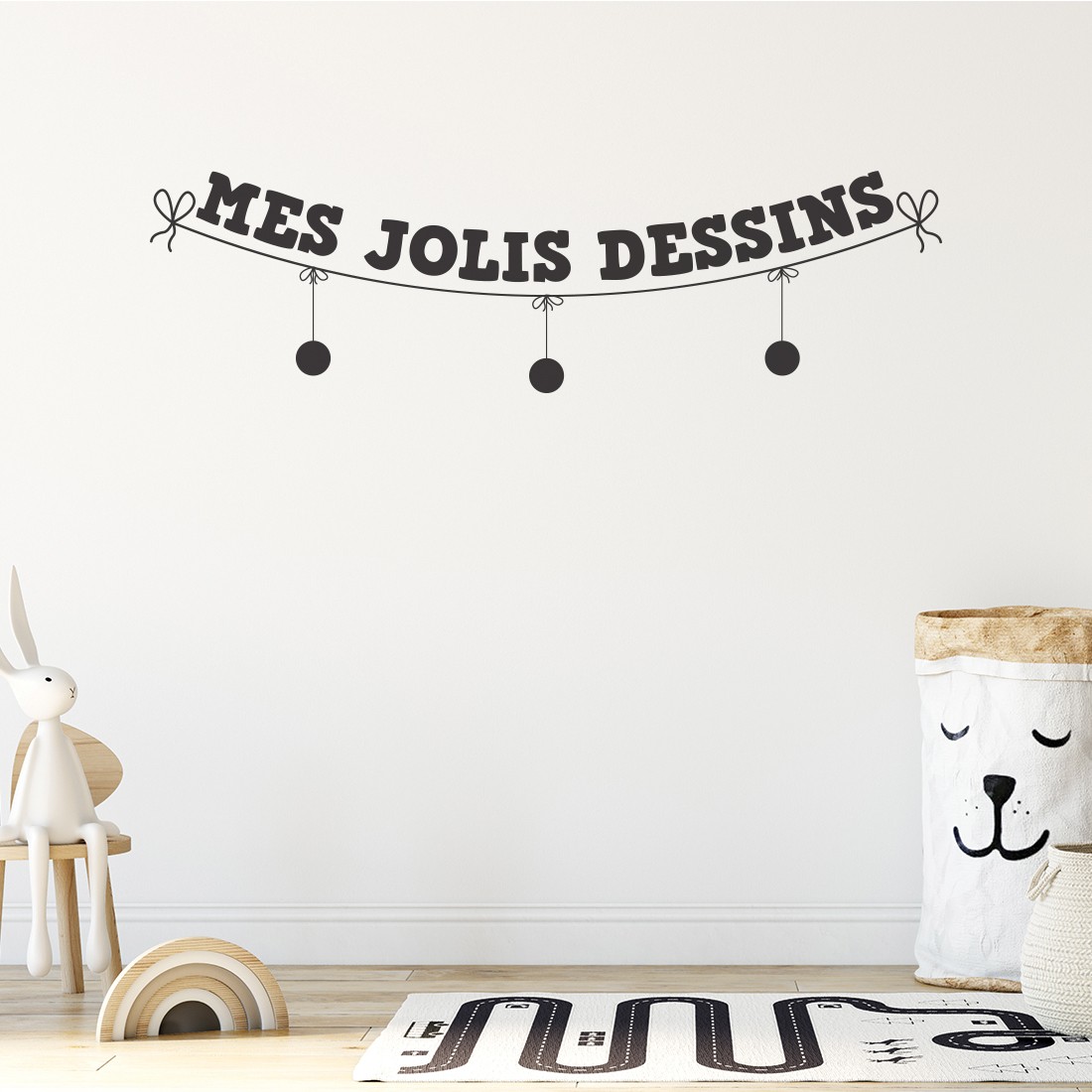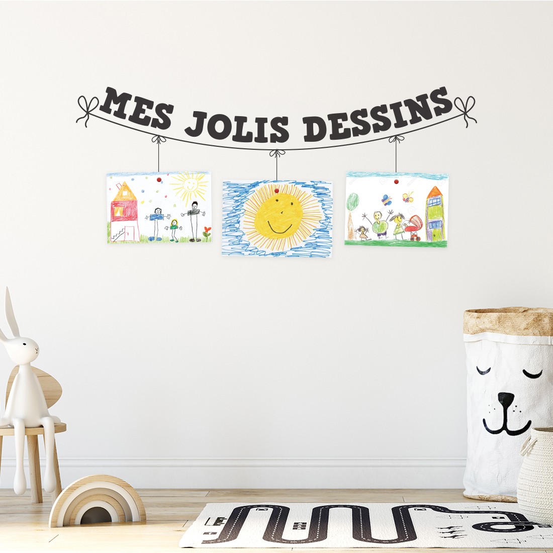 Offrez à votre enfant une décoration murale ludique et créative grâce à ce sticker mural "Mes jolis dessins". Ce sticker livré avec 3 aimants va lui permettre d'accrocher ses plus beaux dessins simplement à l'aide d'aimants ou de magnets.