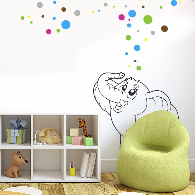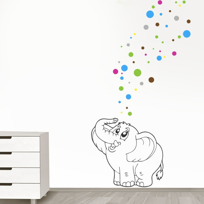 Sticker de décoration original pour enfant. Sticker éléphant magique avec bulles multicolores pour créer un univers et une décoration colorée et vivante.