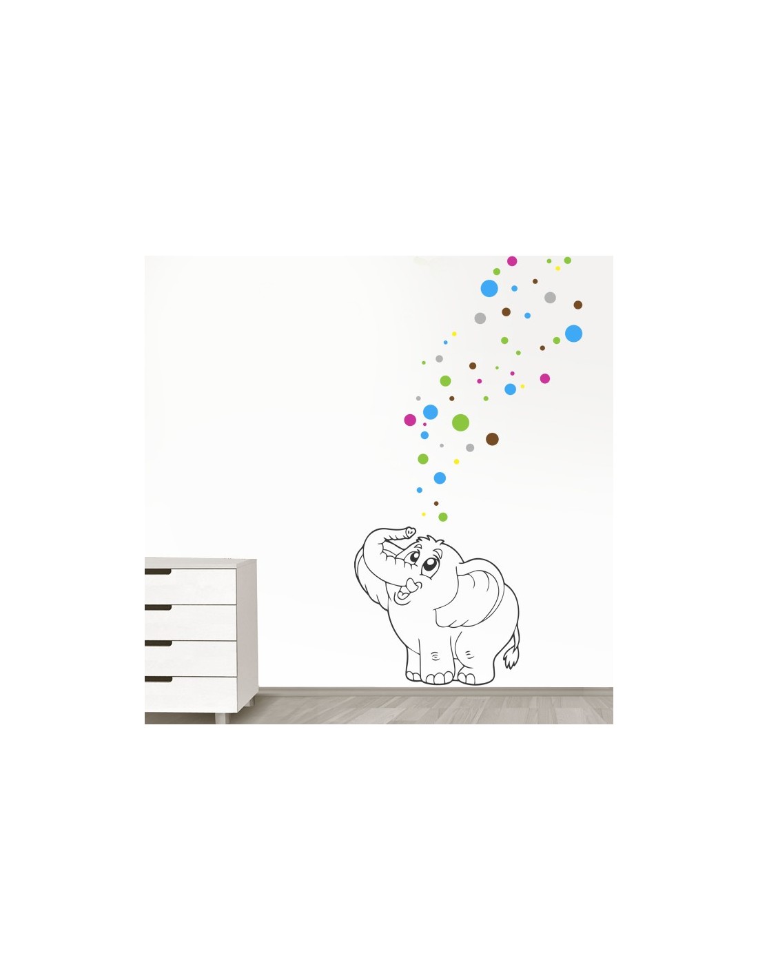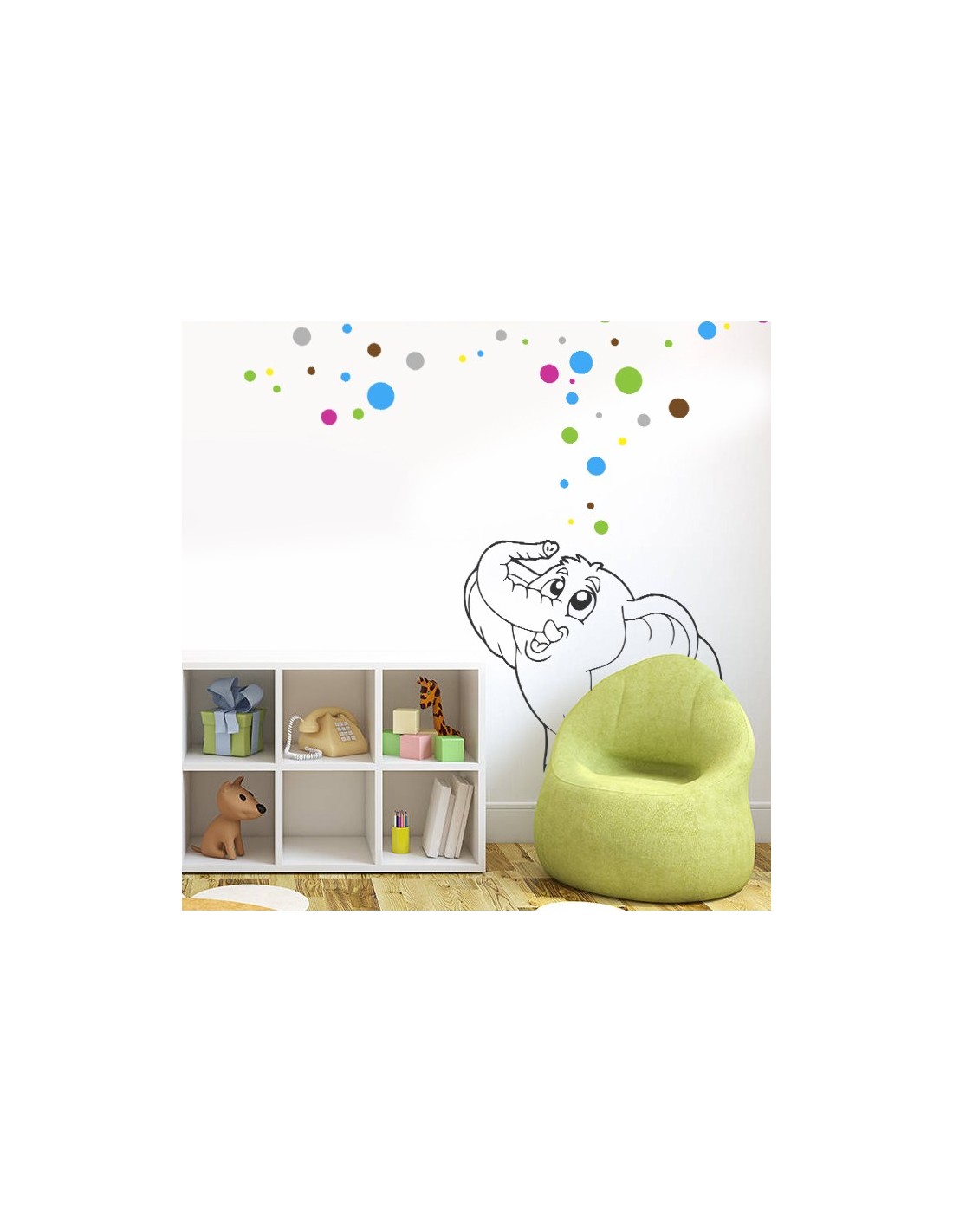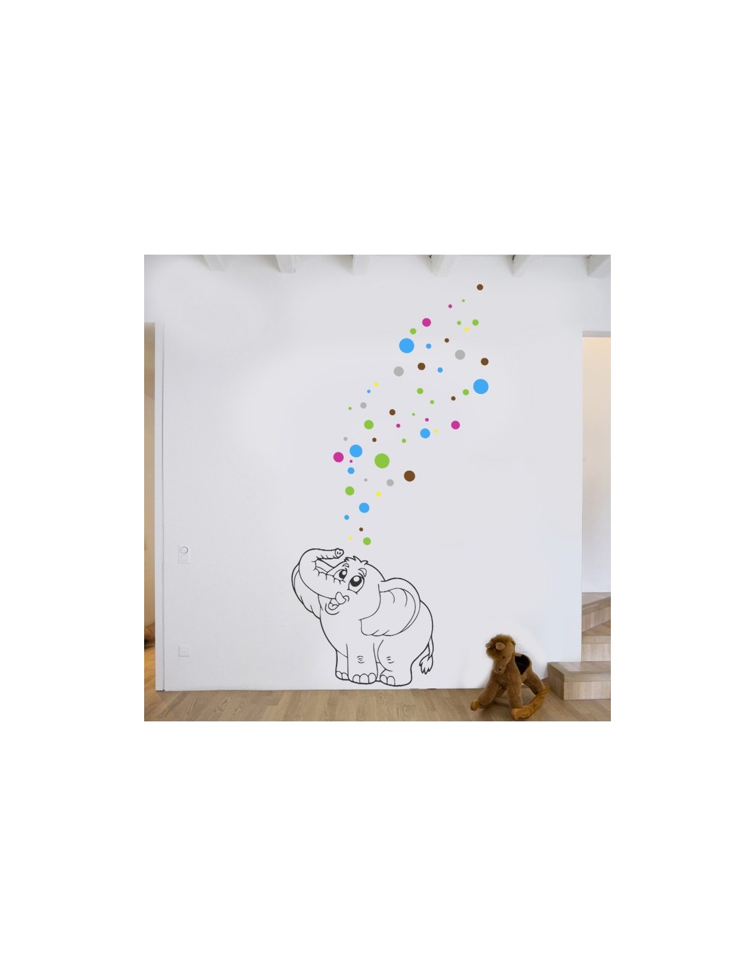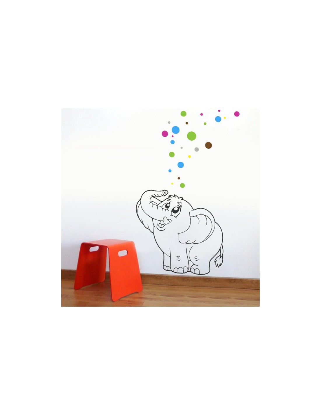 Sticker de décoration original pour enfant. Sticker éléphant magique avec bulles multicolores pour créer un univers et une décoration colorée et vivante.