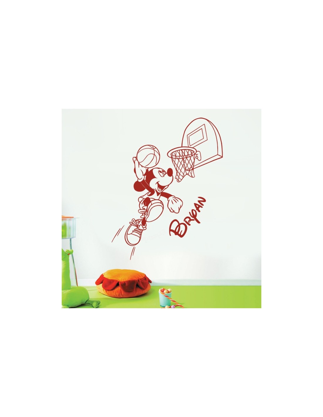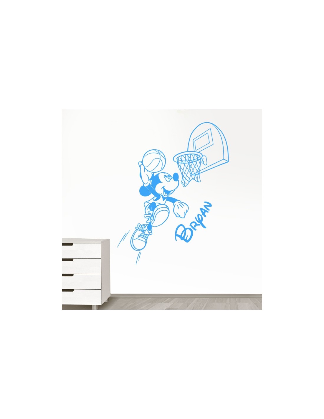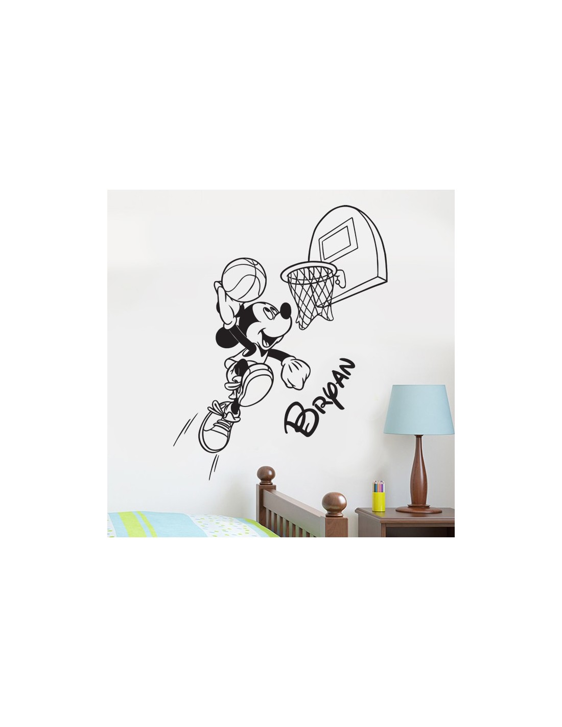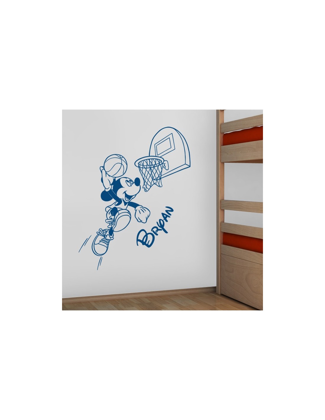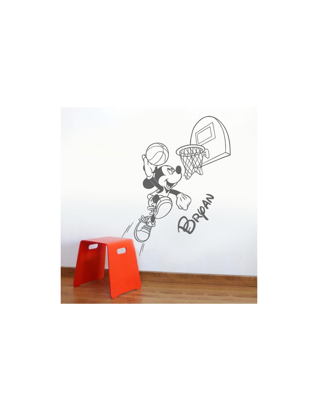 Sticker déco Mickey en joueur de Basket avec prénom personnalisé.