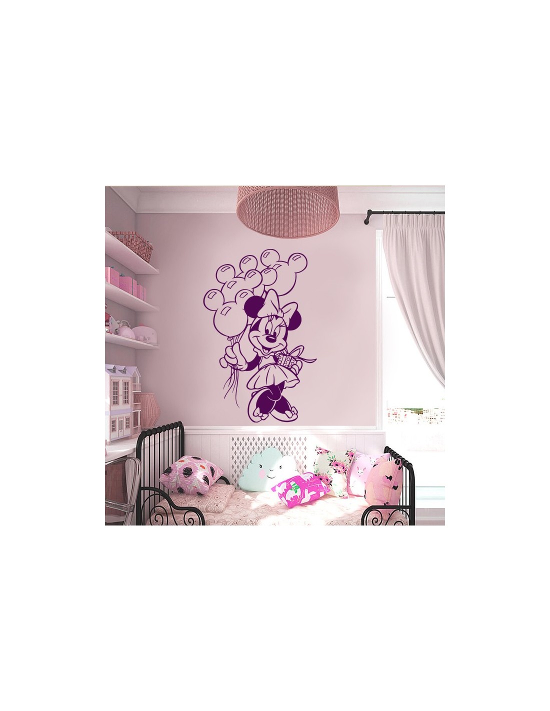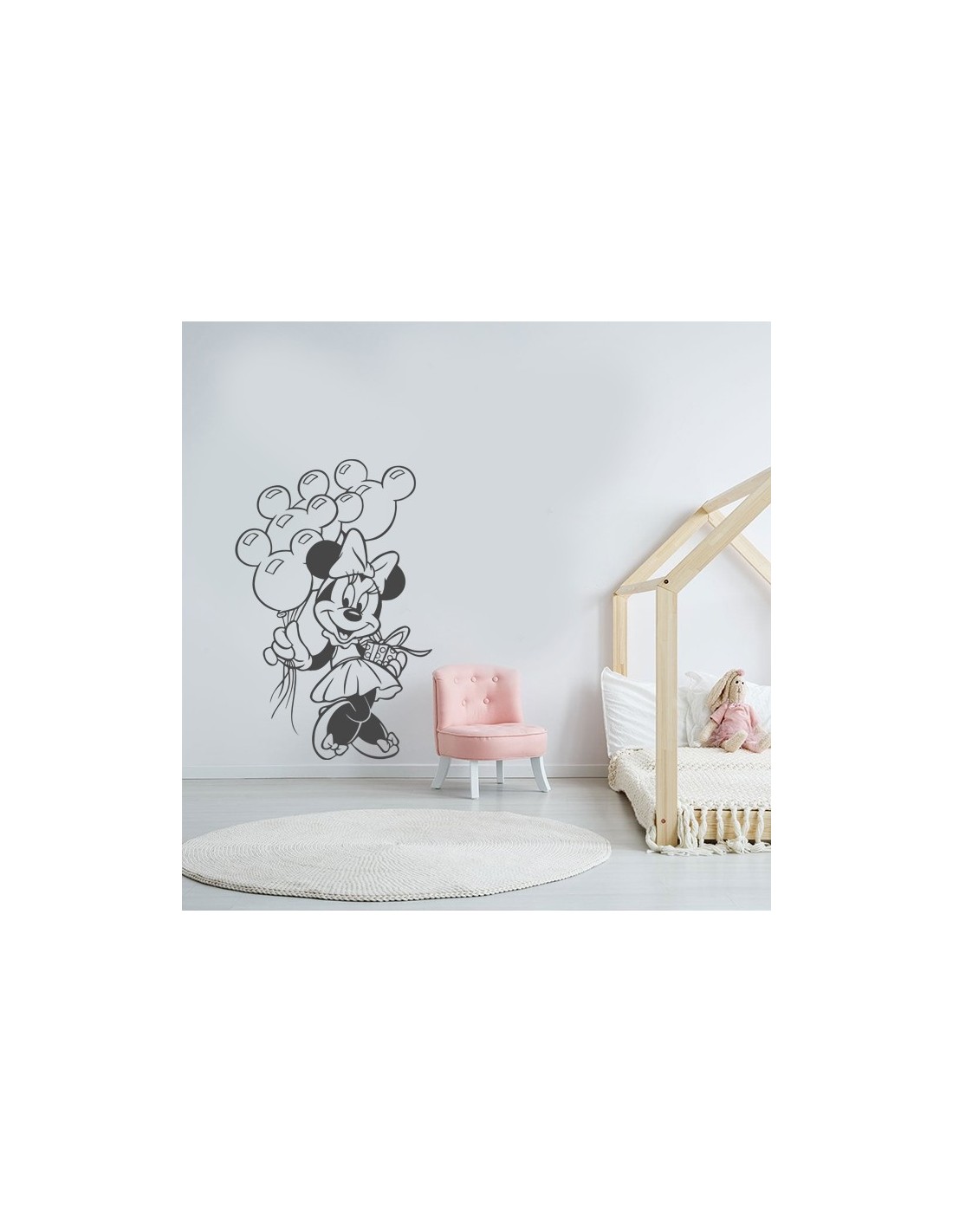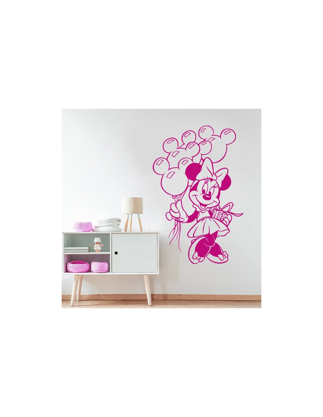 Sticker déco pour fille Minnie accompagnée de ses ballons en forme de tête de Mickey